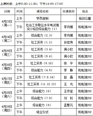 2018年社区工作者助理社会工作师考前辅导第四期(总第29期)培训班课程安排