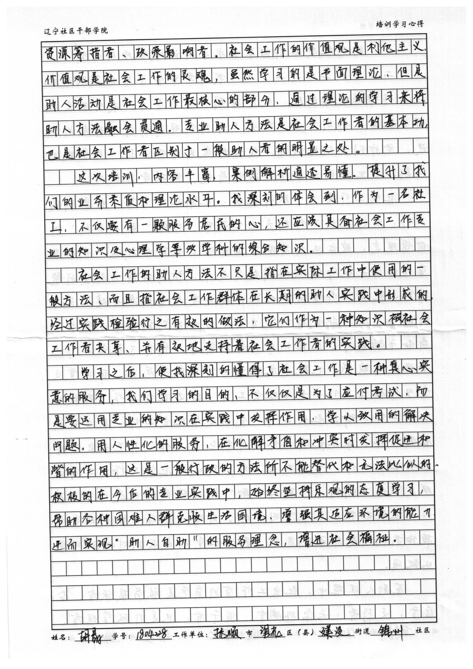 抚顺市望花区建设街道锦州社区胡 晶学习心得