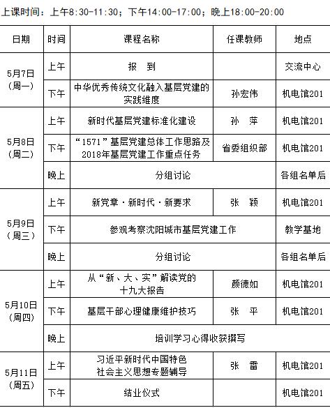 2018年全省街道党工委书记第三期培训班课程安排