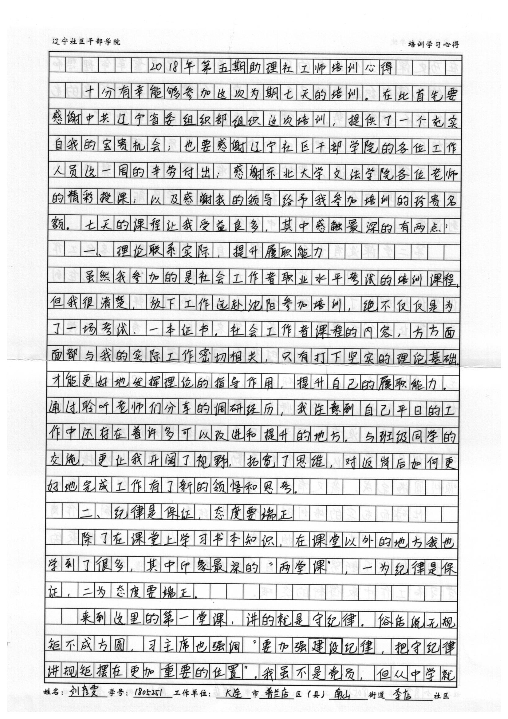 大连市普兰店区南山街道李店社区刘彦雯学习心得