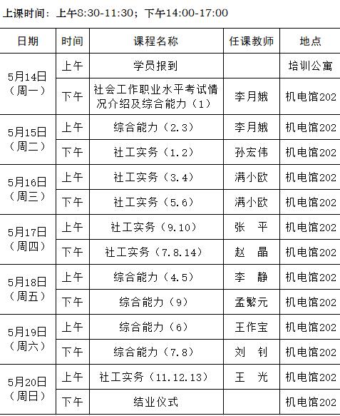 2018年社区工作者助理社会工作师考前辅导第六期(总第31期)培训班课程安排