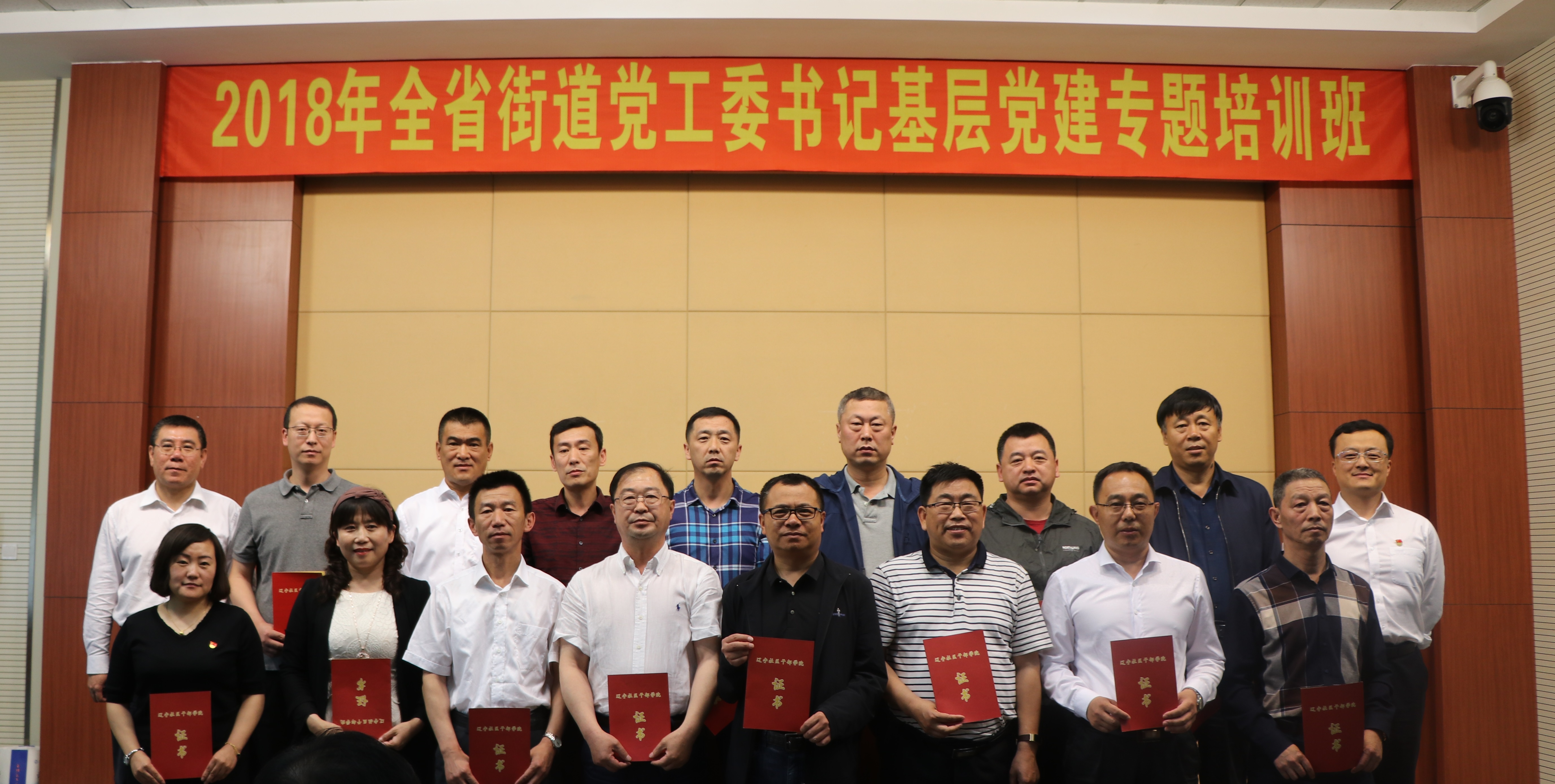 5月18日11:00,2018年全省街道党工委书记第四期培训班结业仪式在东北大学机电学馆201室举行,中共辽宁省委组织部组织一处副处长翟广平同志,辽宁社区干部学院办公中心主任、文法学院副院长隋永强同志参加了本次结业仪式,仪式由隋永强主持。