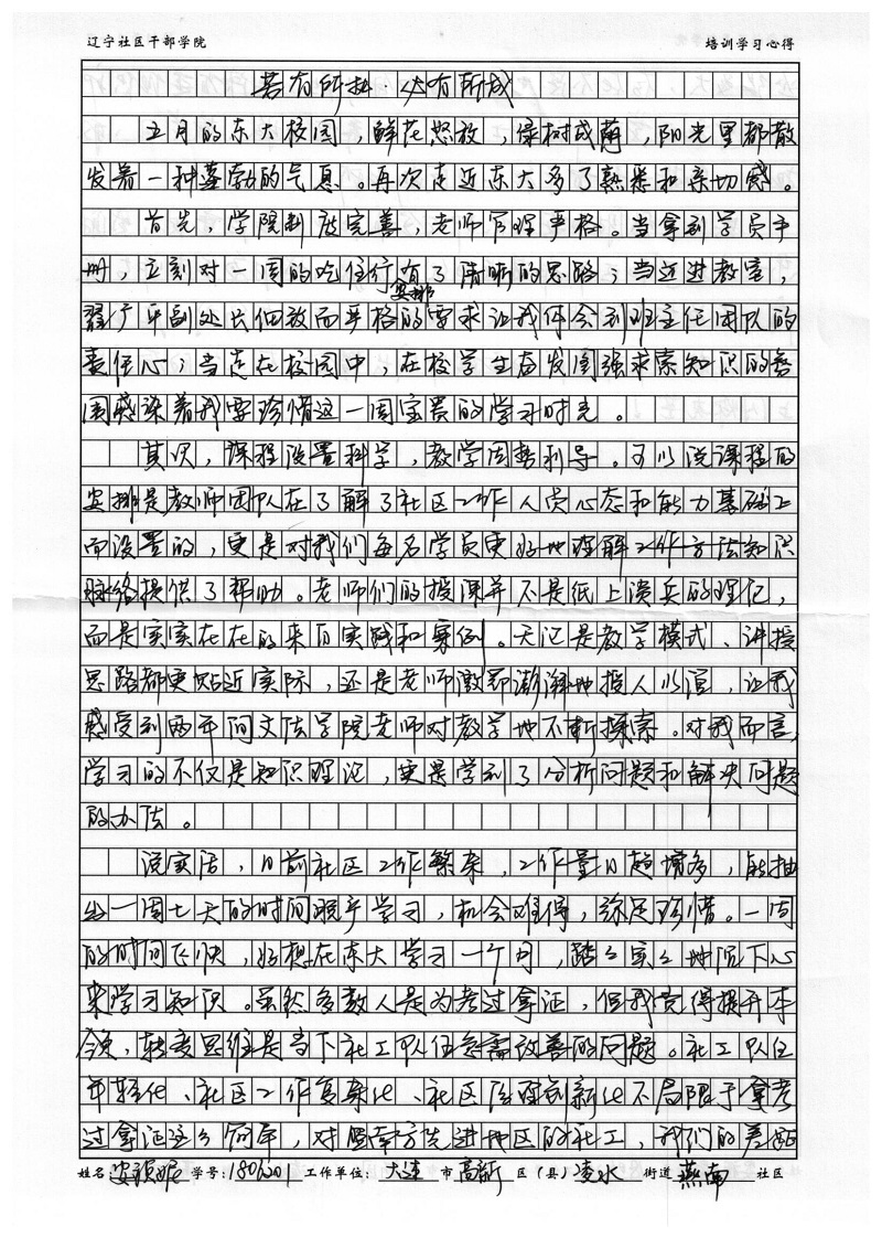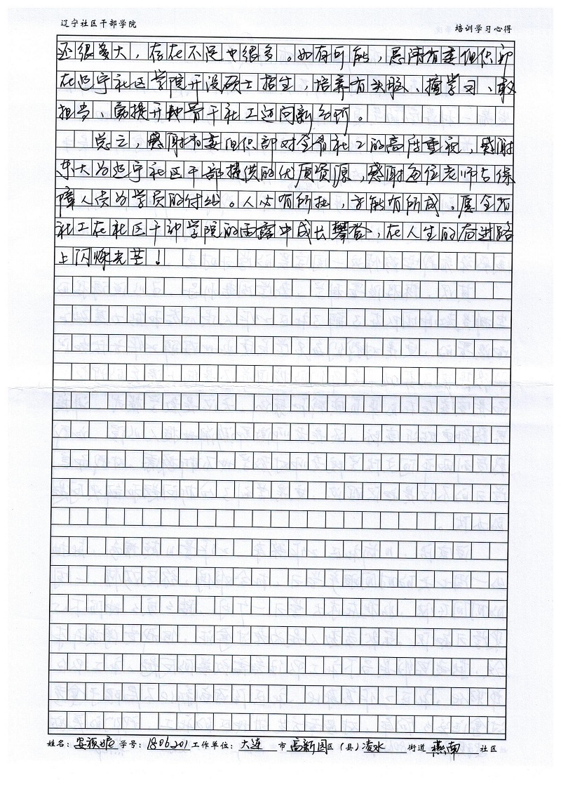大连市高新区凌水街道燕南社区安祯妮心得体会