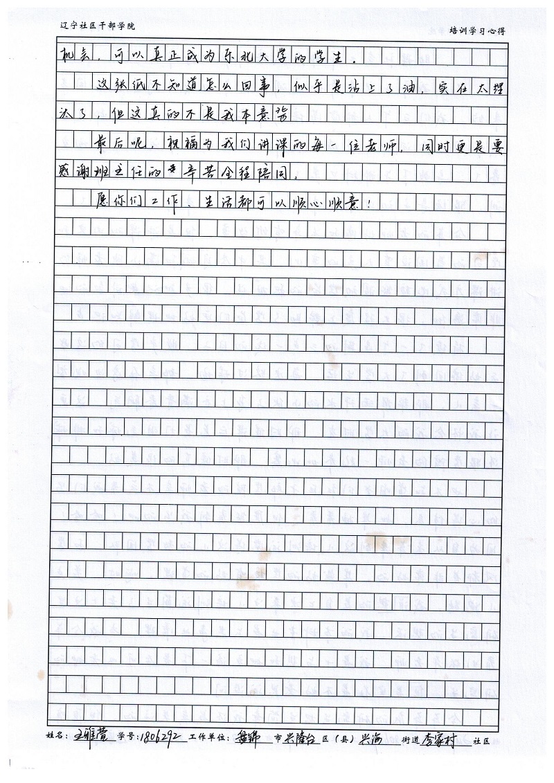 盘锦市玲珑台区兴海街道李家村社区王雅萱心得体会