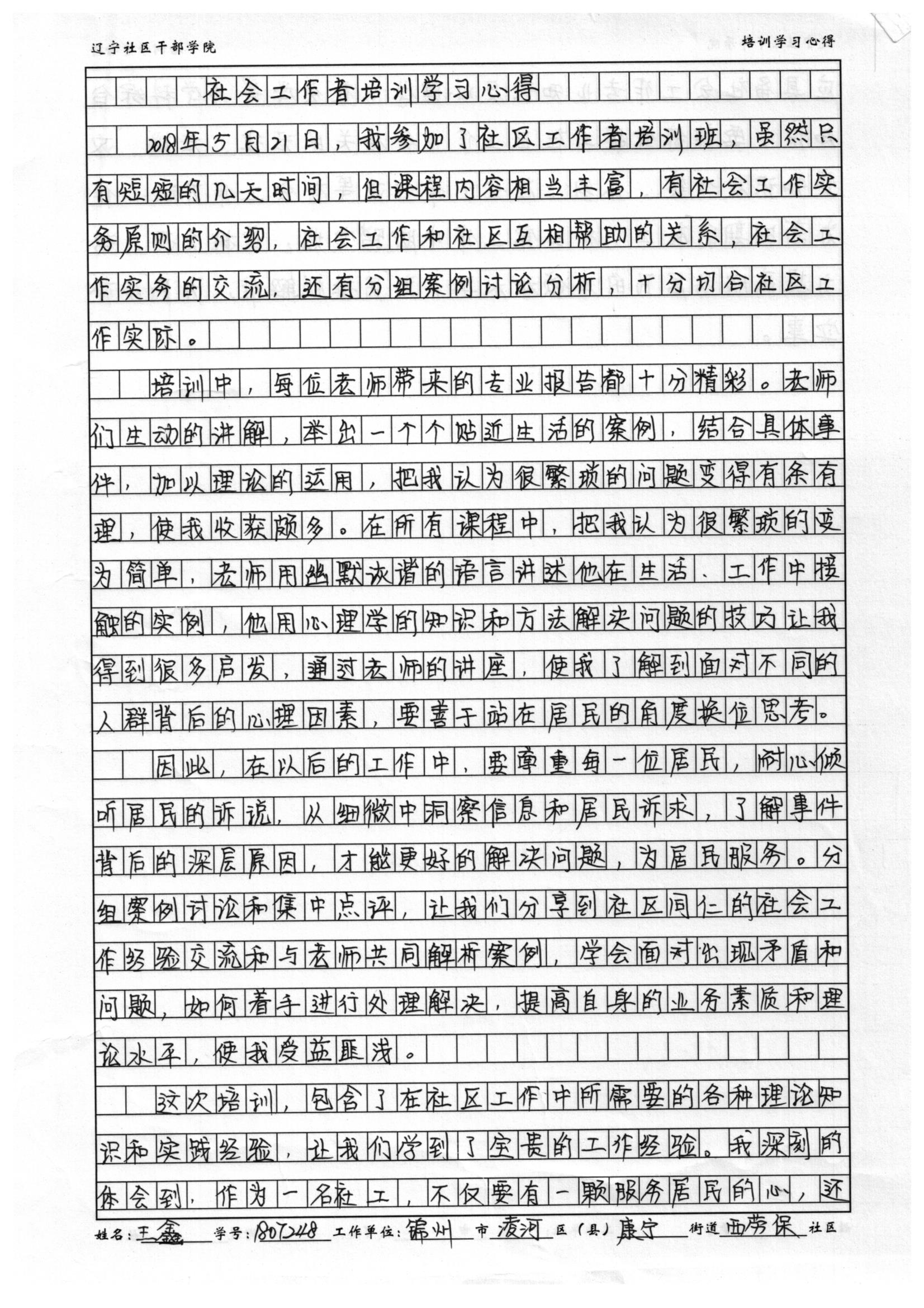 锦州市凌河区康宁街道西劳保社区王鑫心得体会