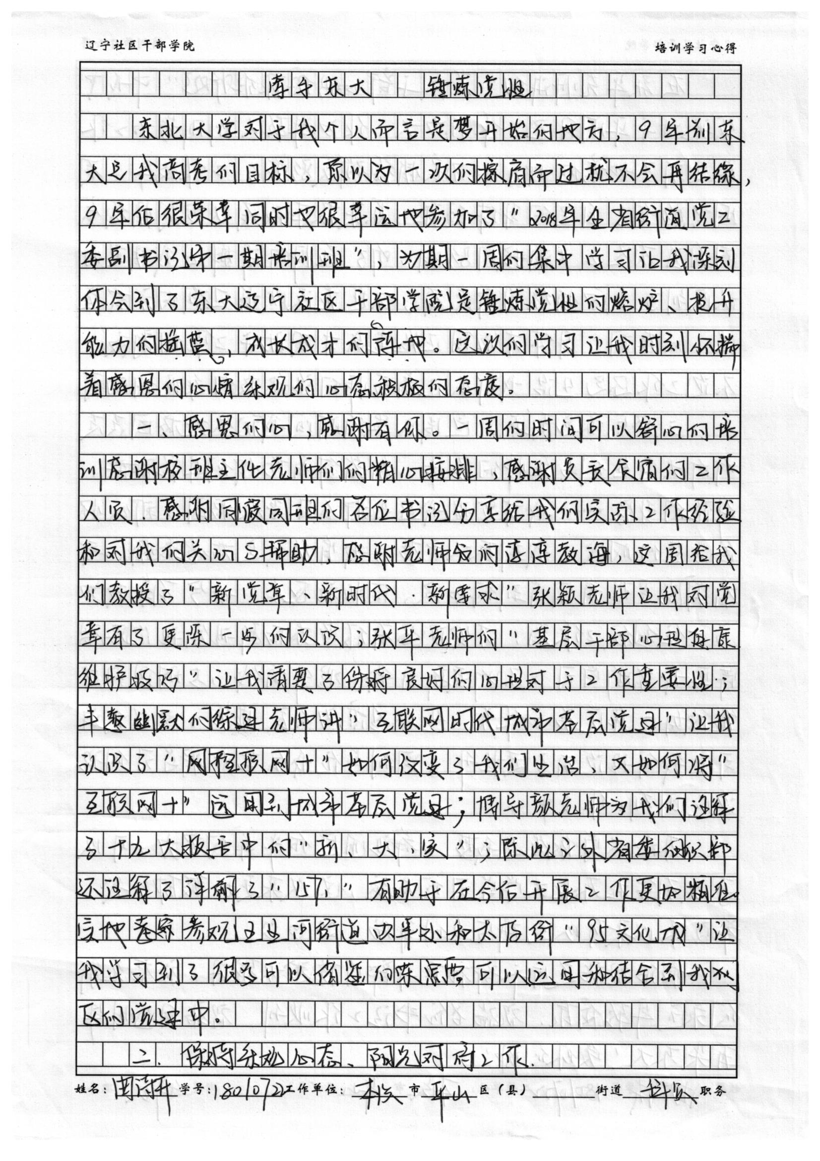 本溪市平山区北台街道党工委副书记曲诗卉学习心得