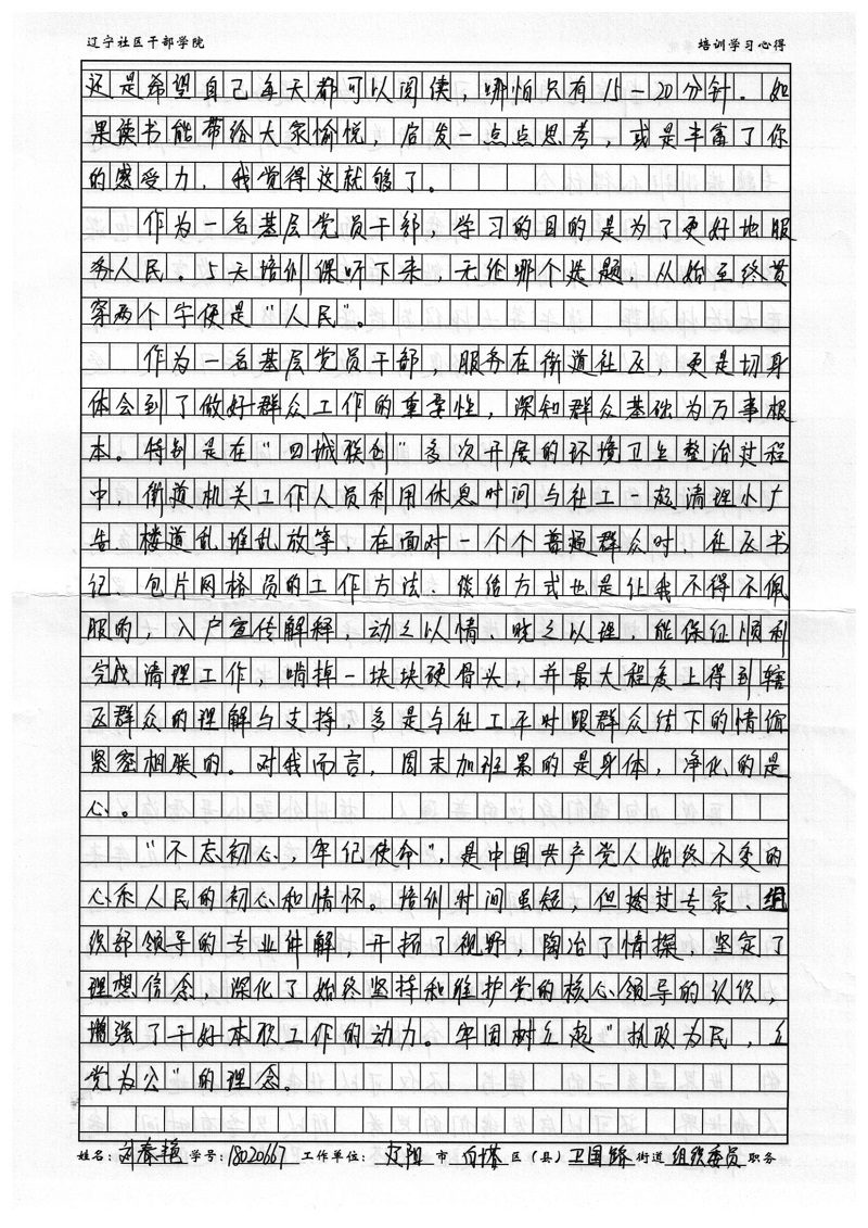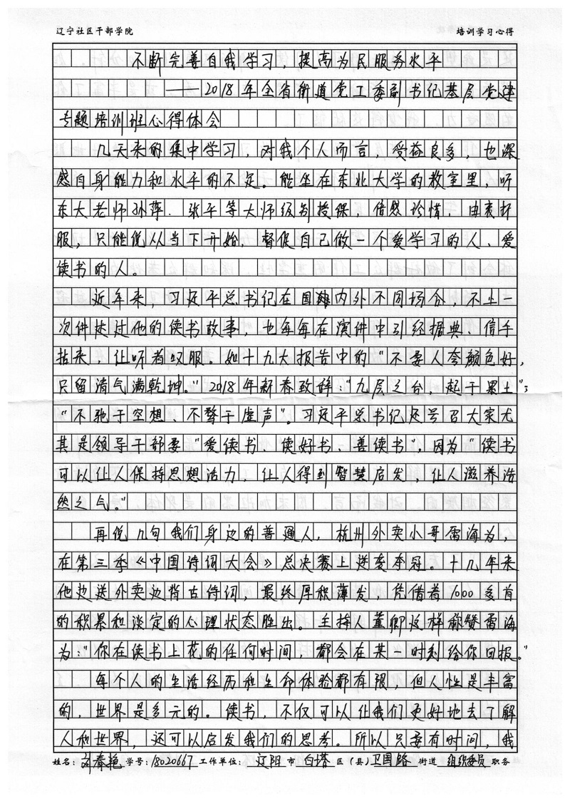 辽阳市白塔区卫国路街道组织委员刘春艳学习心得