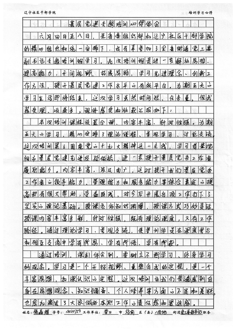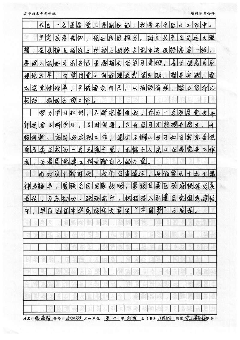 营口市站前区八田地街道副书记张晶熠学习心得