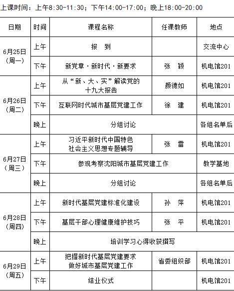 2018年全省街道党工委副书记第三期培训班课程安排