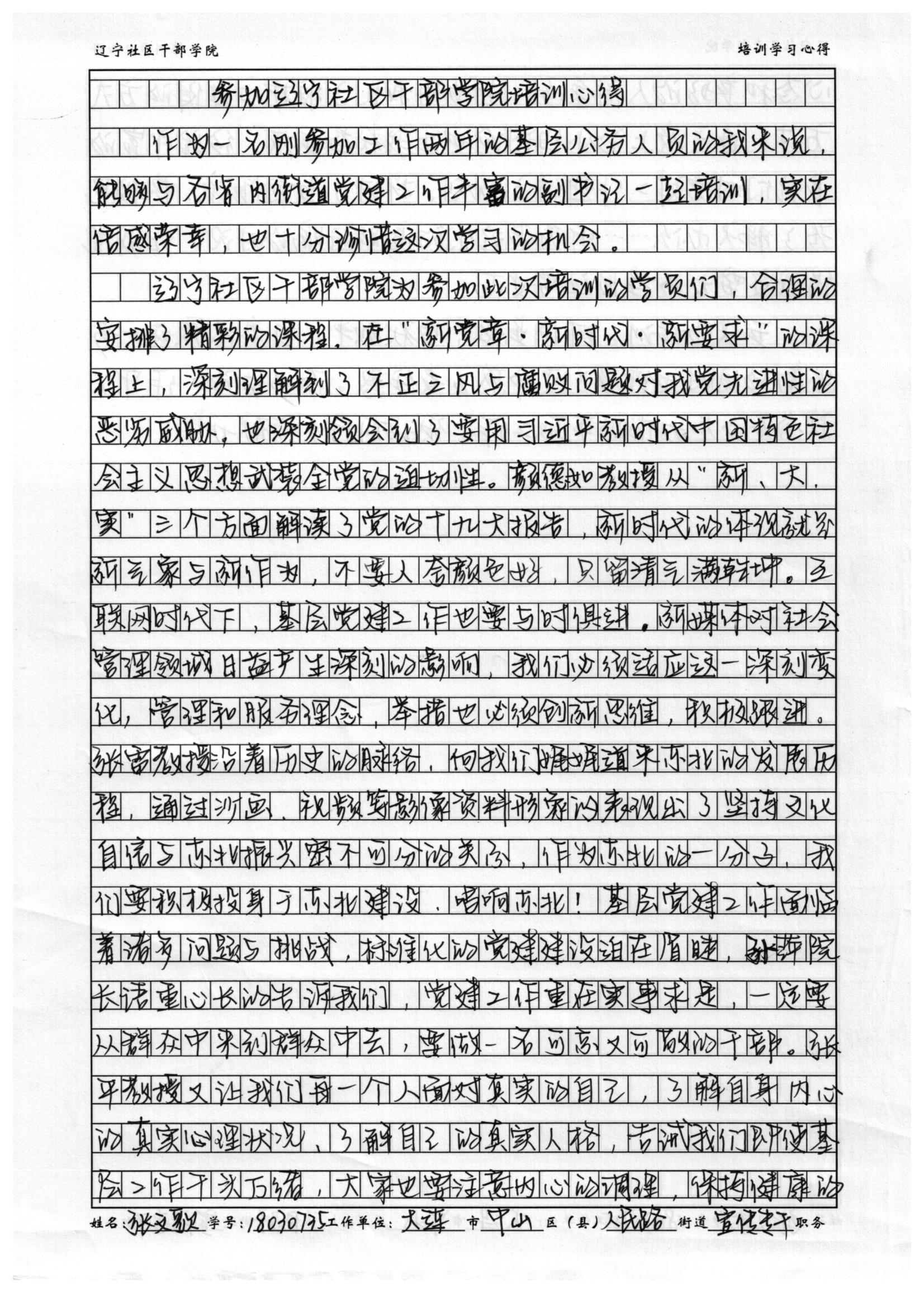大连市中山区人民路街道党工委办公室宣传专干张文歌学习心得