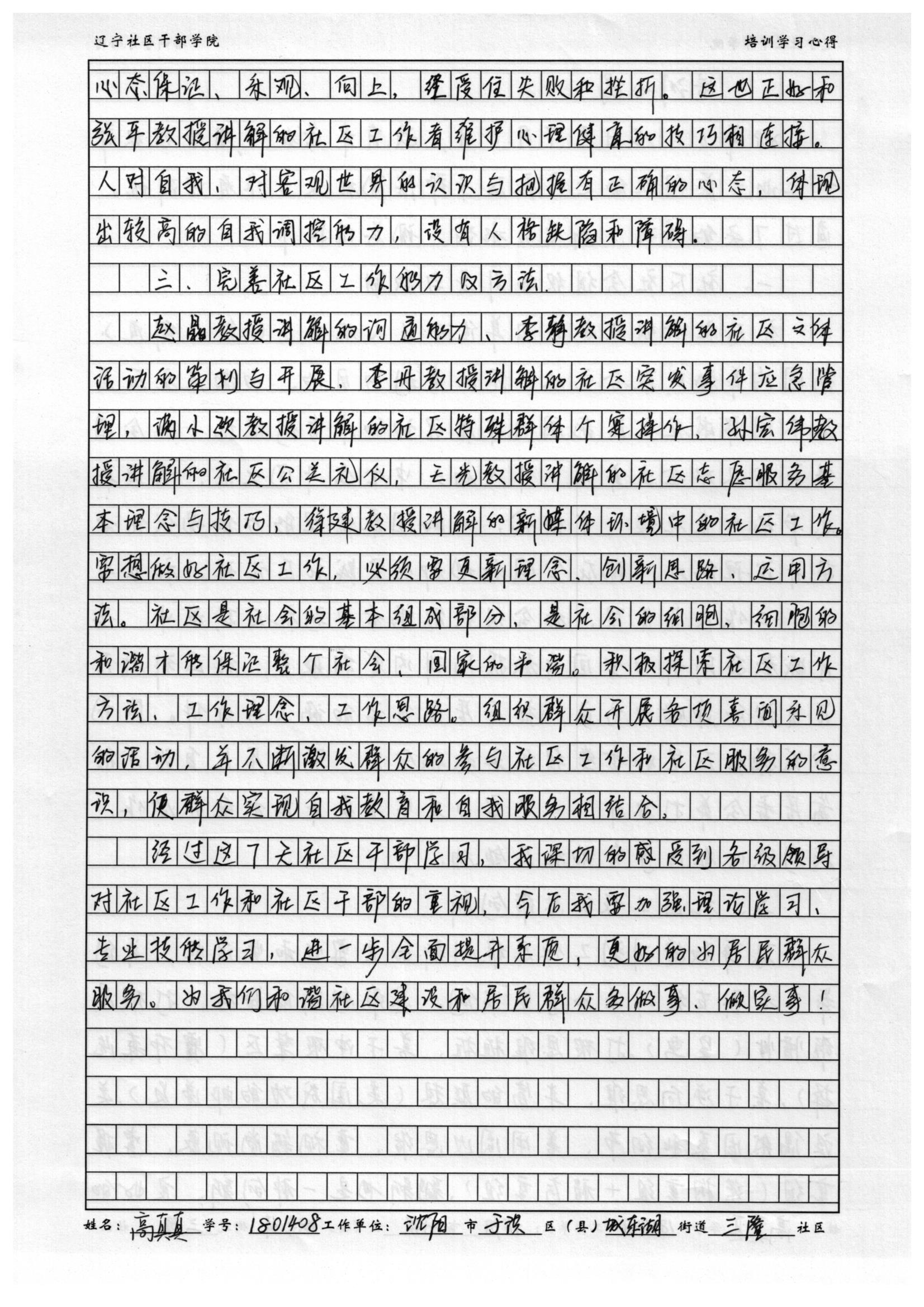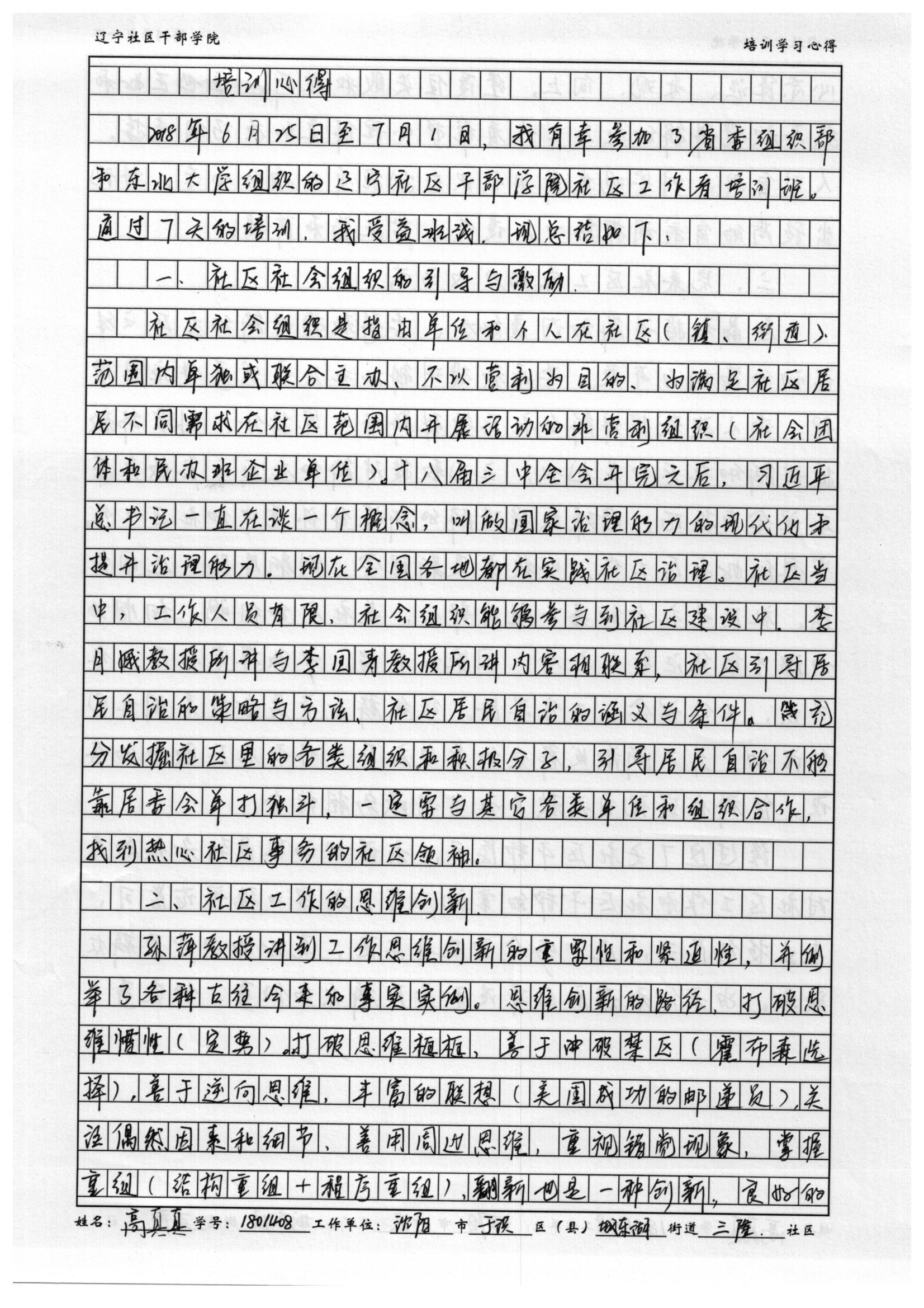 沈阳市于洪区城东湖街道三隆社区高真真学习心得