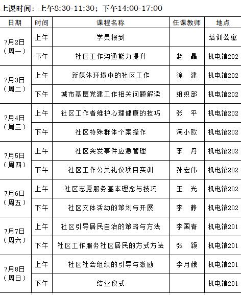 2018年社区工作者社区工作实务第二期(总第46期)培训班课程安排