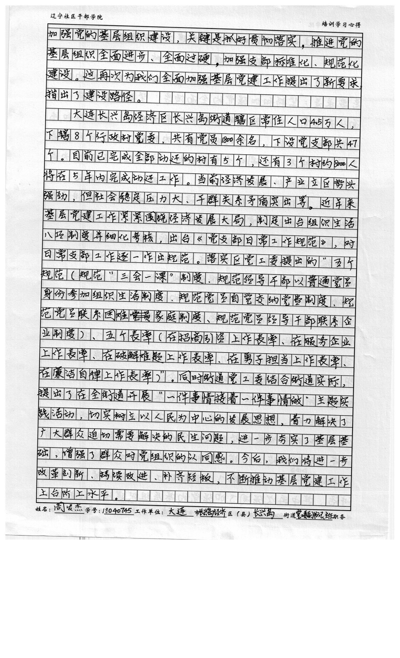 大连市长兴岛经济区长兴岛街道党工委副书记、主任周发杰学习心得