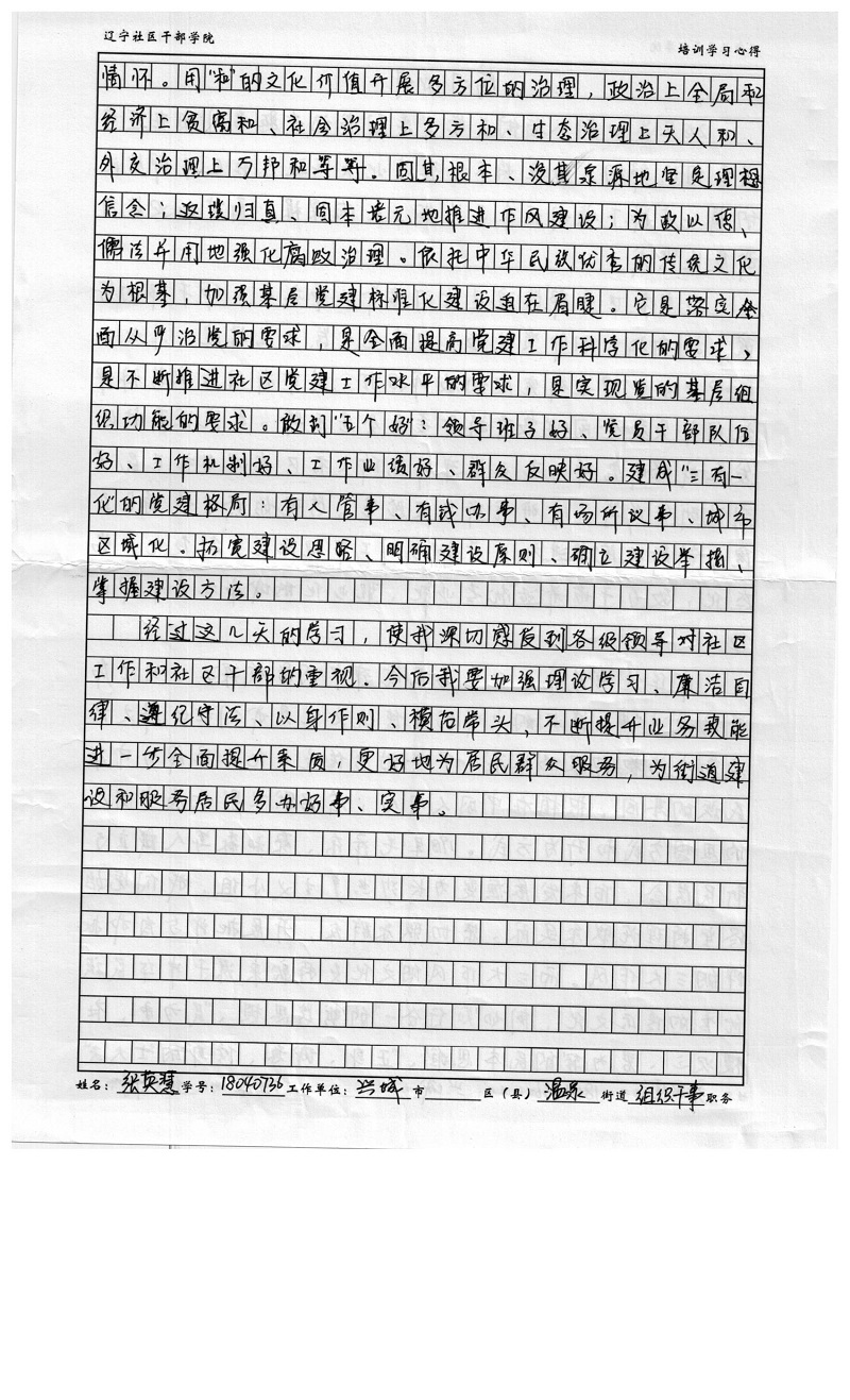 葫芦岛市兴城市温泉街道组织干事张英慧学习心得