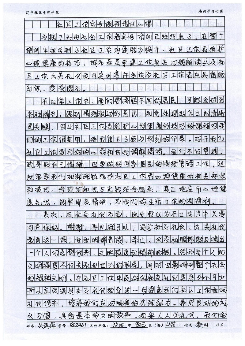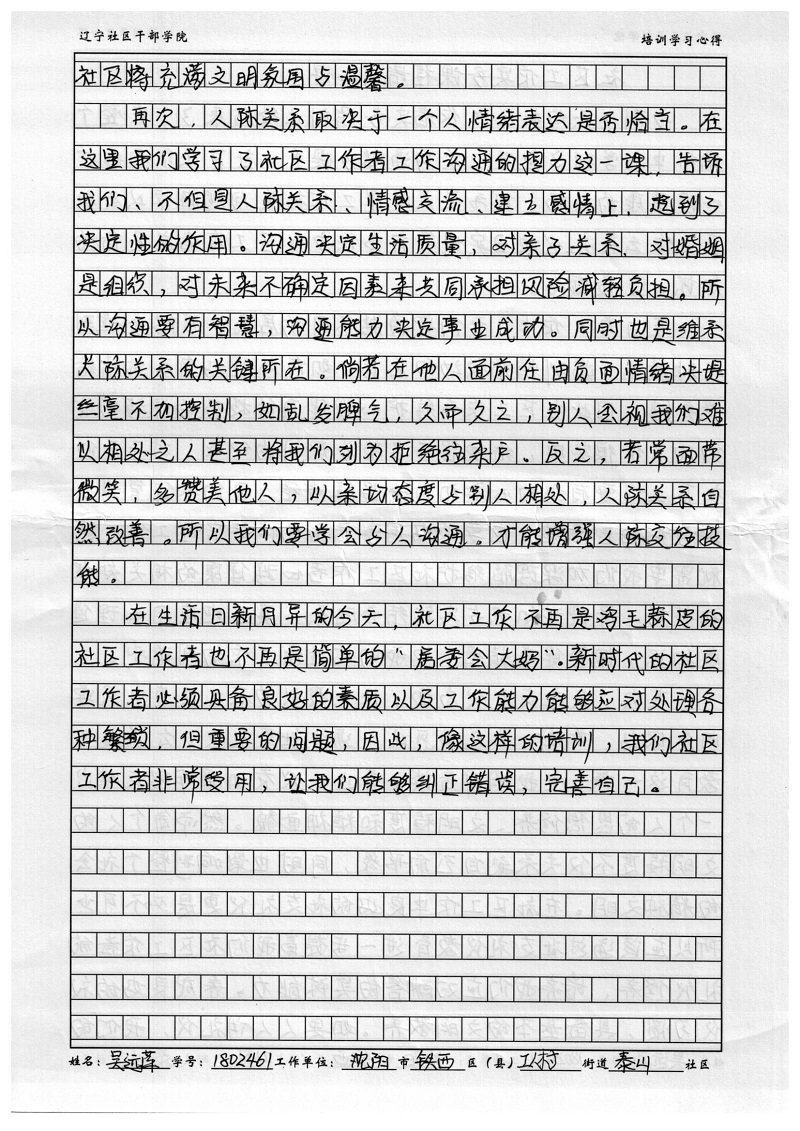 沈阳市铁西区工人村街道泰山社区吴远萍学习心得