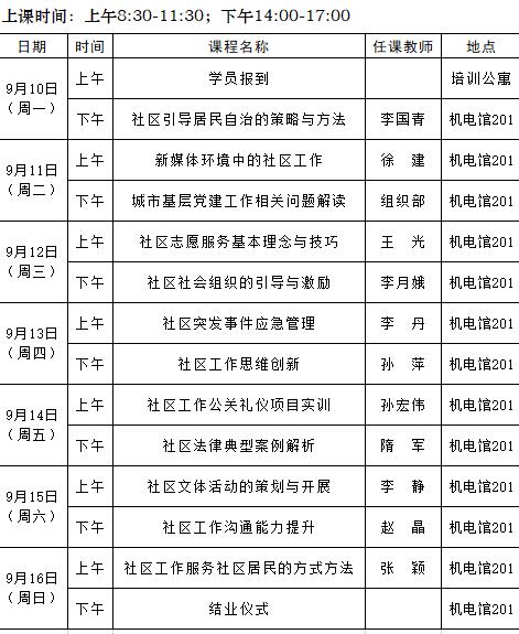 2018年社区工作者社区工作实务第三期(总第47期)培训班课程安排