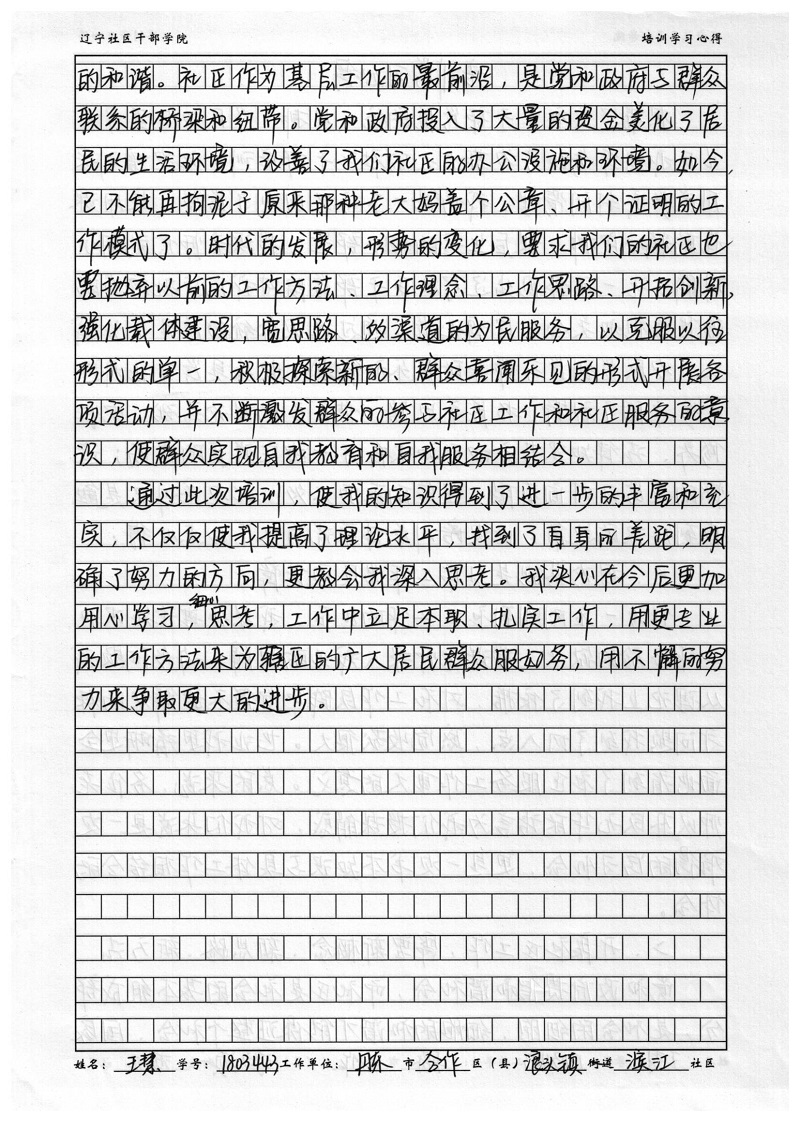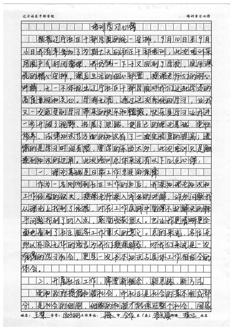 丹东市合作区浪头镇滨江社区社区干部王慧培训心得