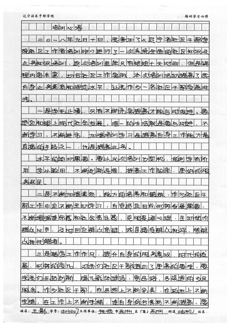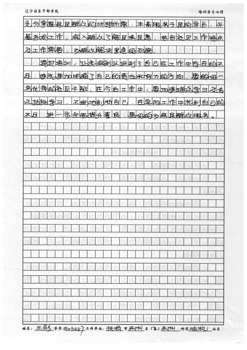 抚顺市东洲区东洲街道油机社区再就业主任王影培训心得