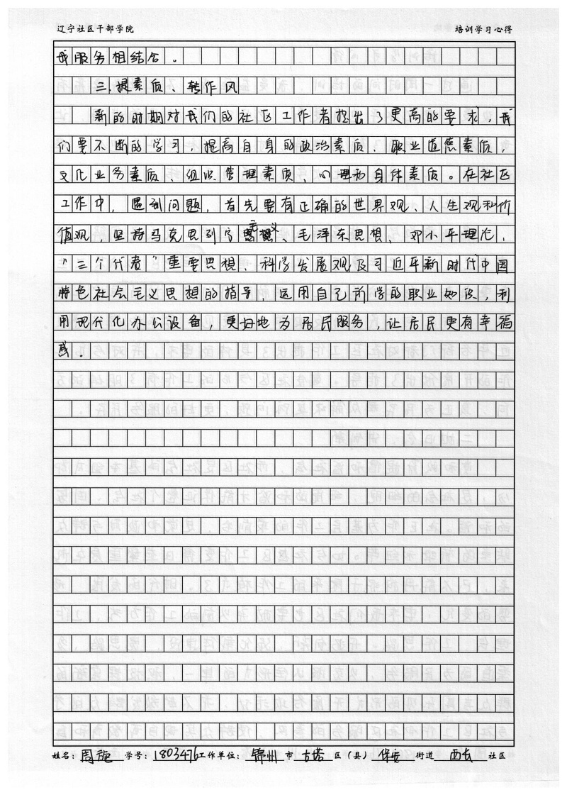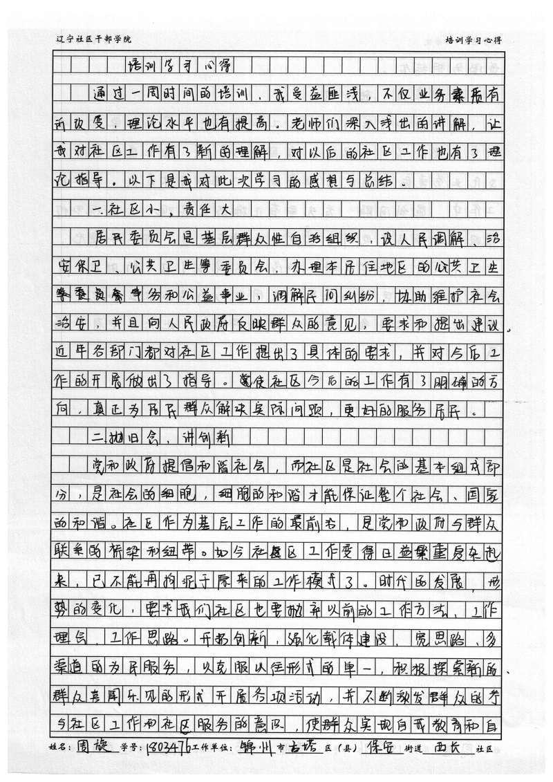 锦州市古塔区保安街道西长社区委员周旋培训心得