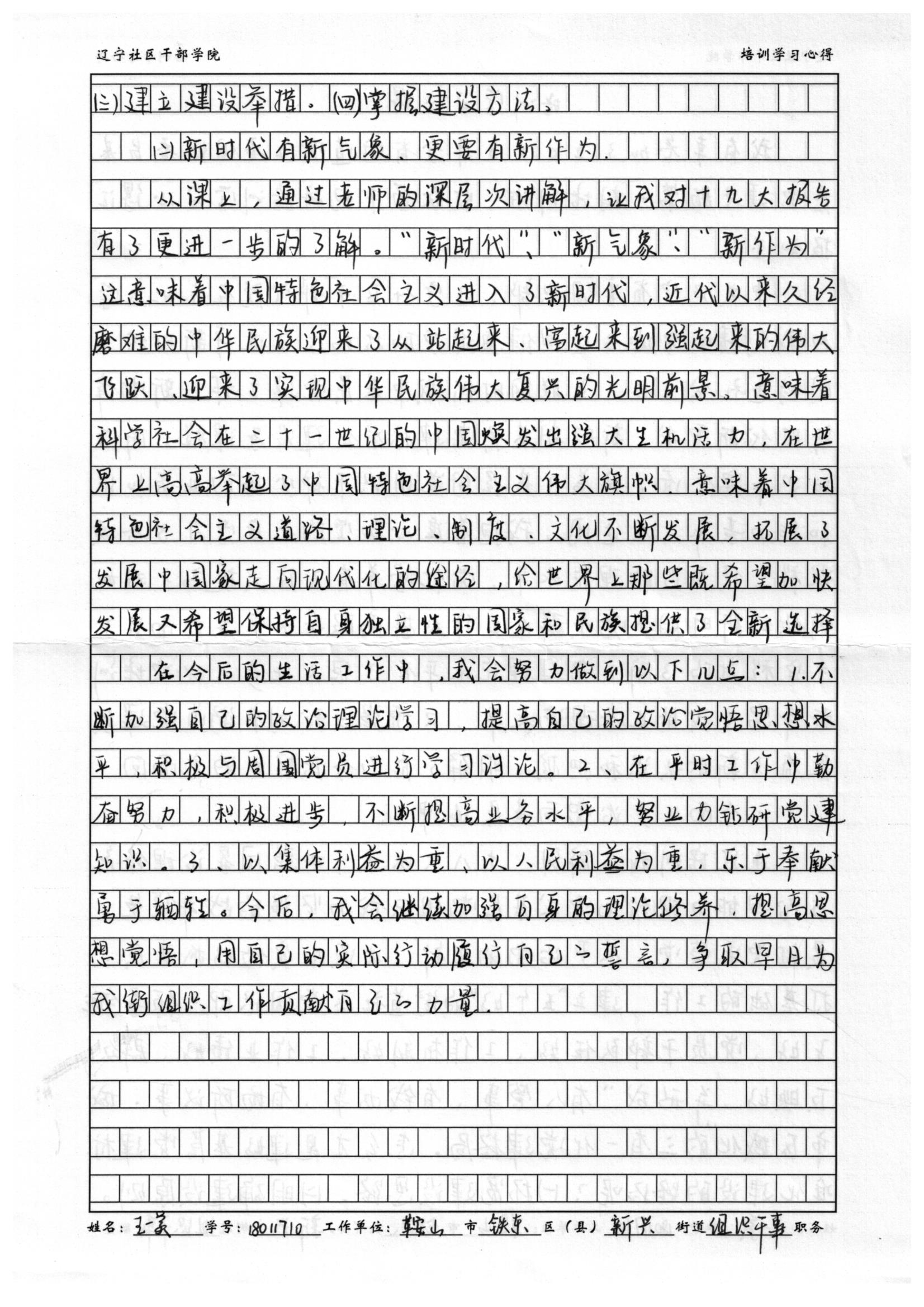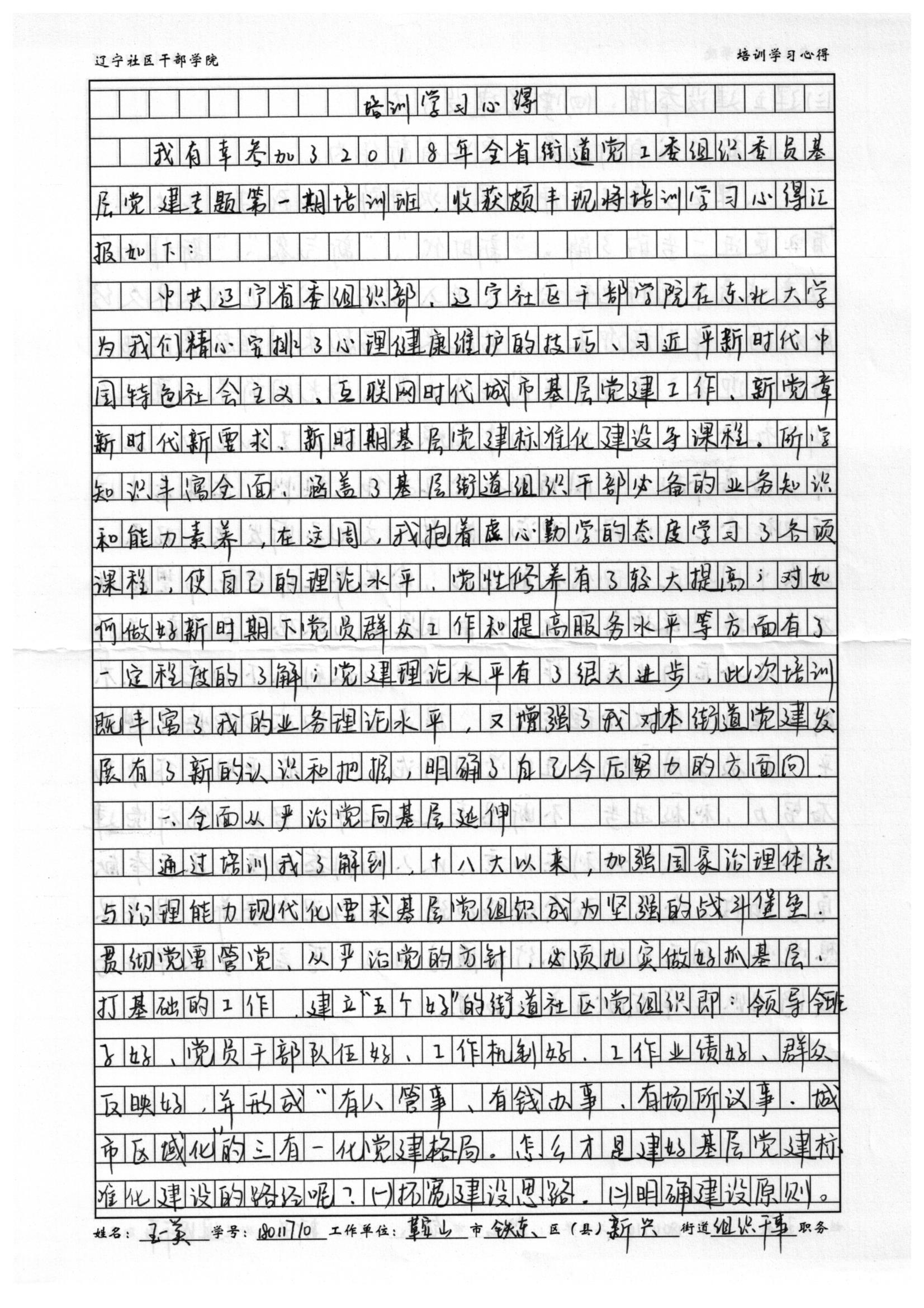 鞍山市铁东区新兴街道组织干事王一美培训心得