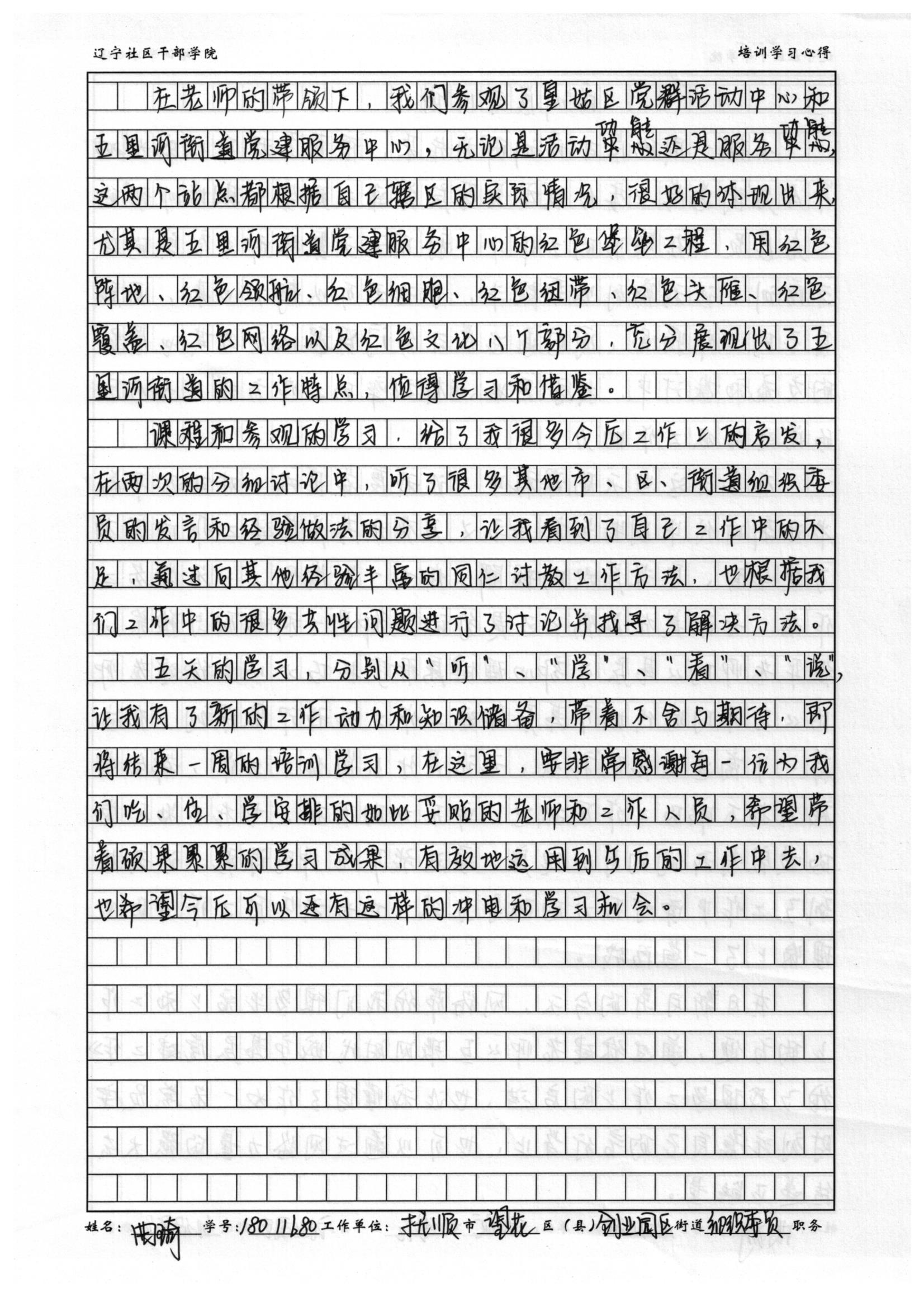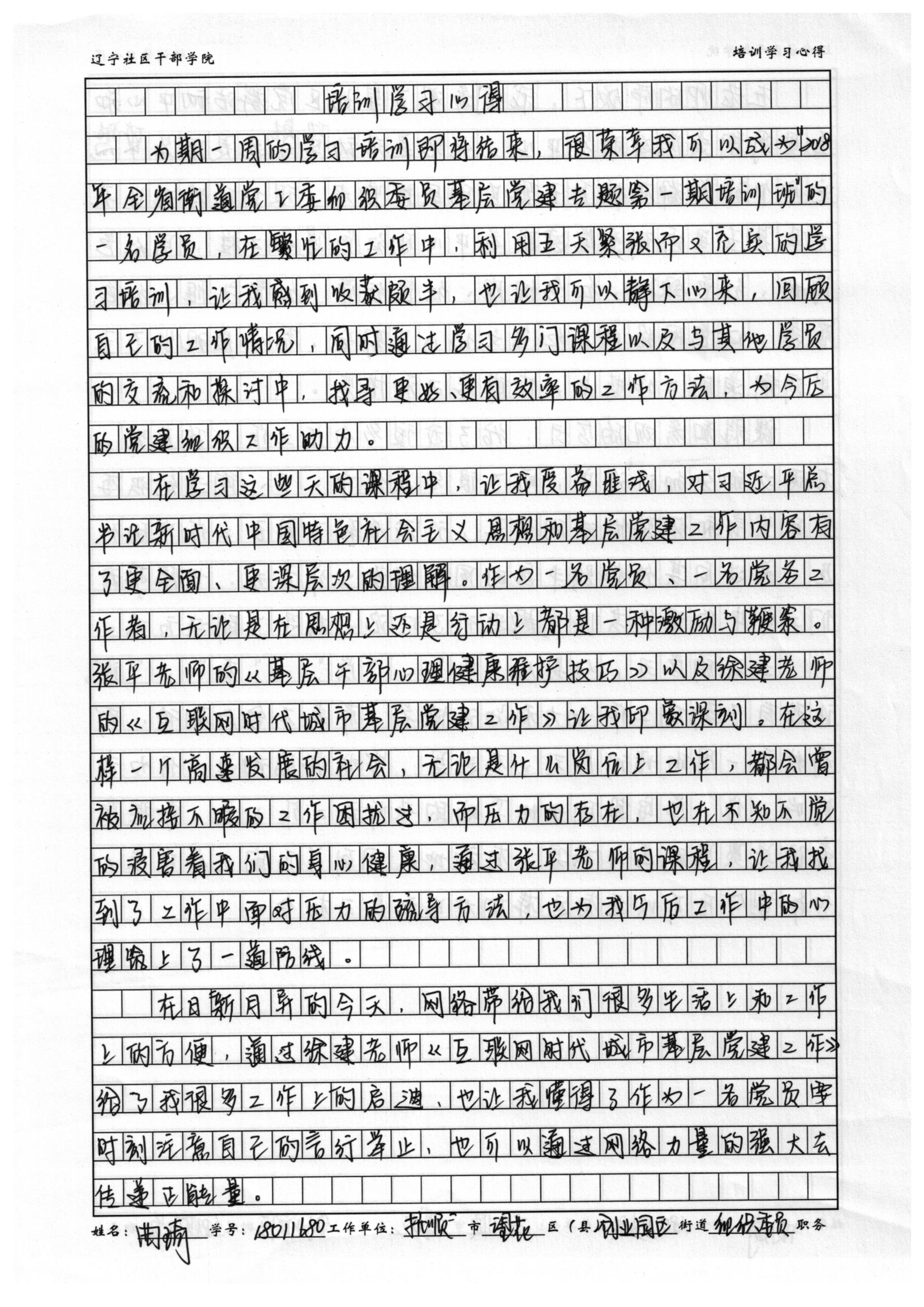 抚顺市望花区创业园区党工委组织委员曲琦培训心得