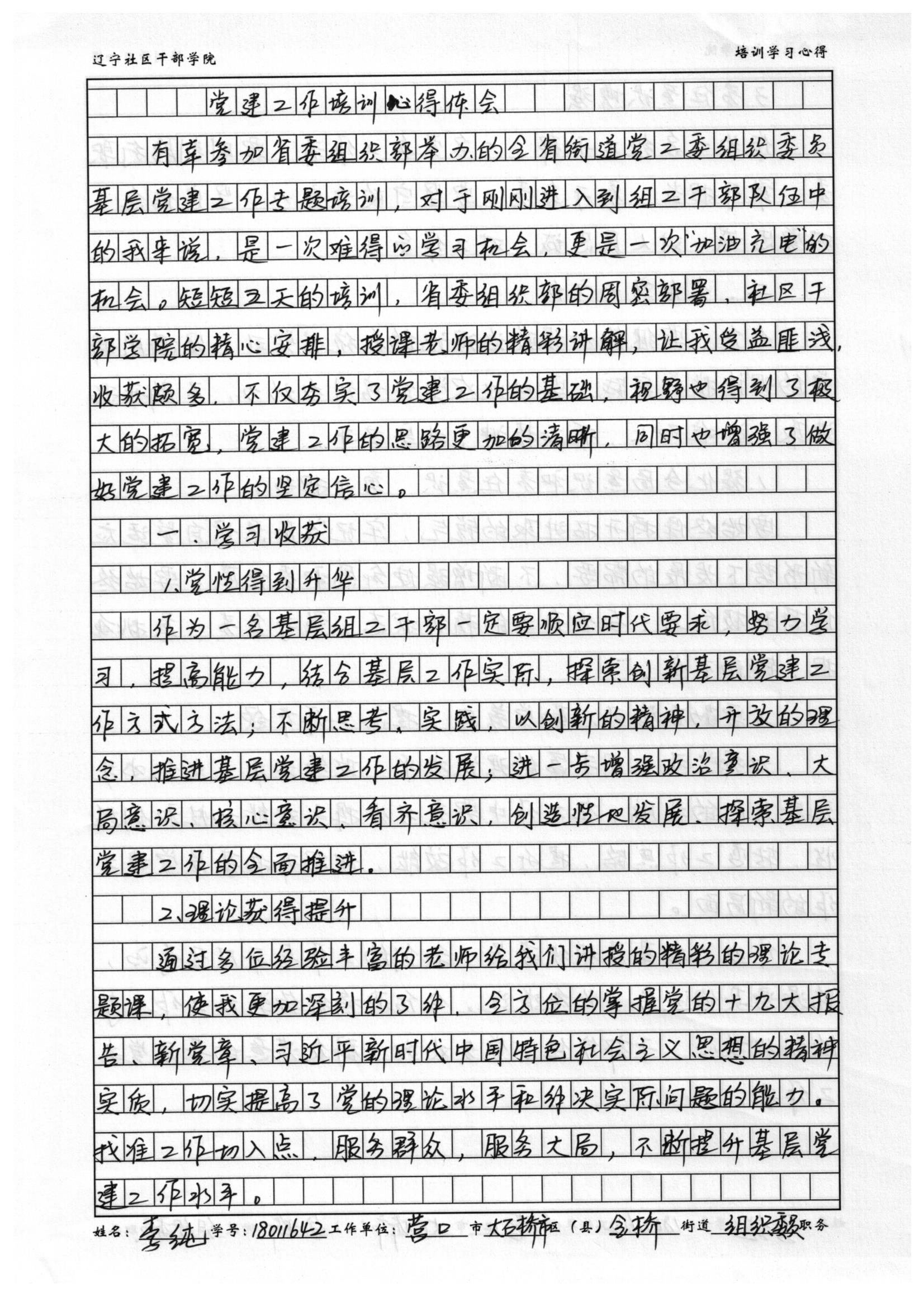营口市大石桥市金桥街道党工委组织委员李纯培训心得