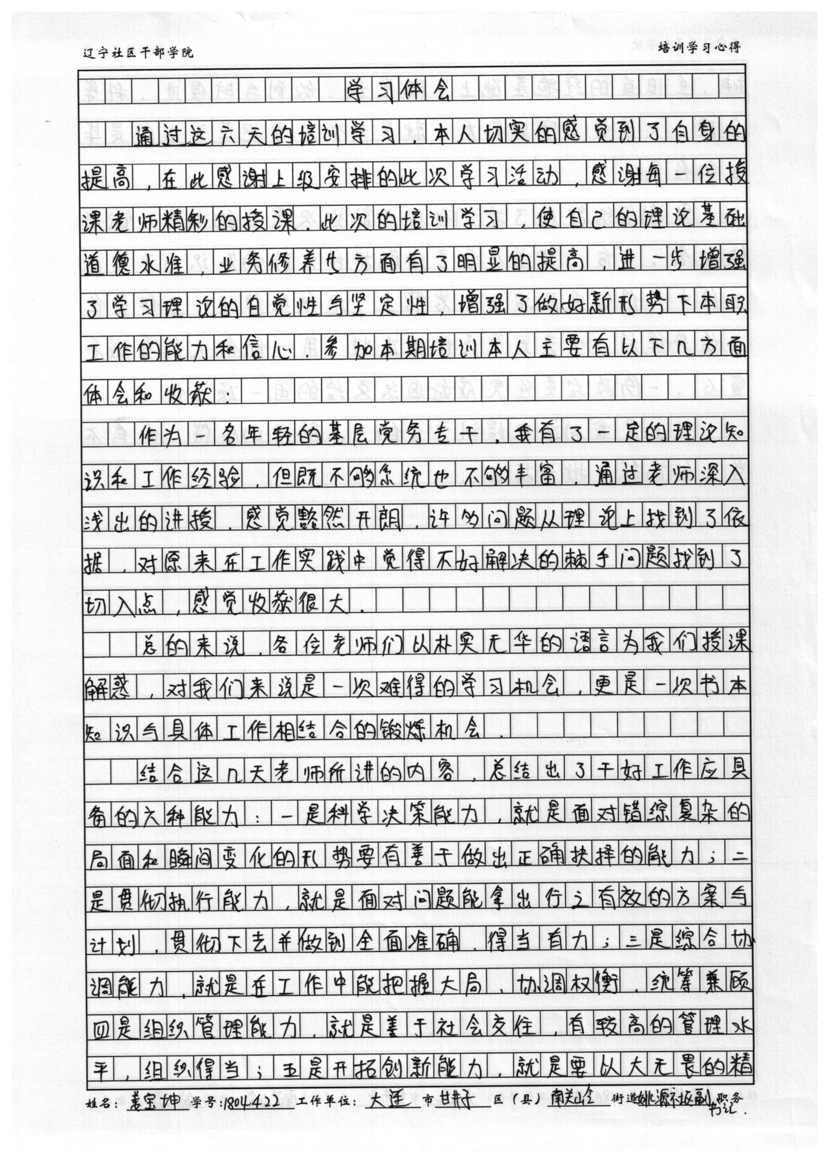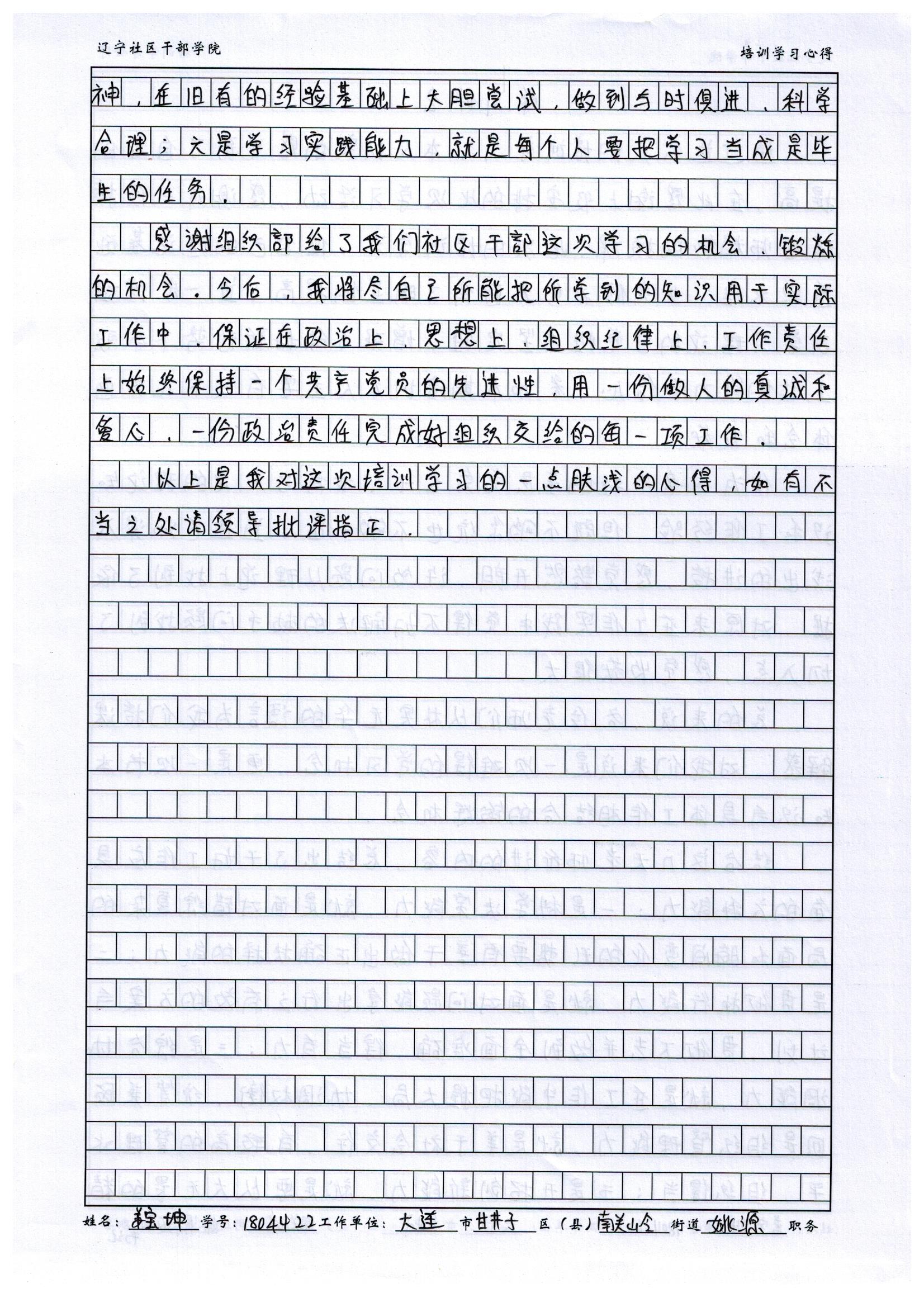 大连市甘井子区南关岭街道姚源社区副书记姜宝坤学习心得