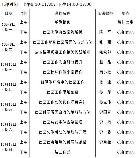2018年社区工作者社区工作实务第五期(总第49期)培训班课程安排
