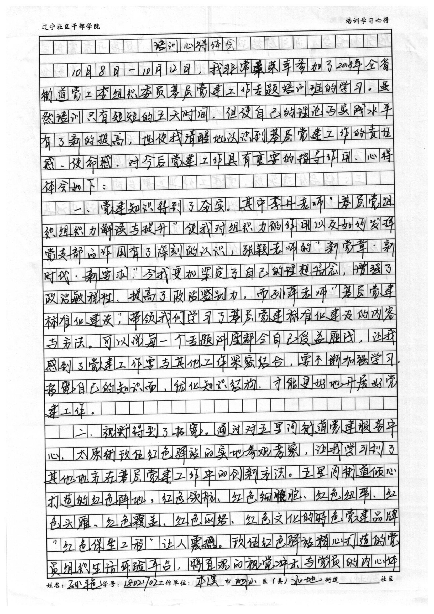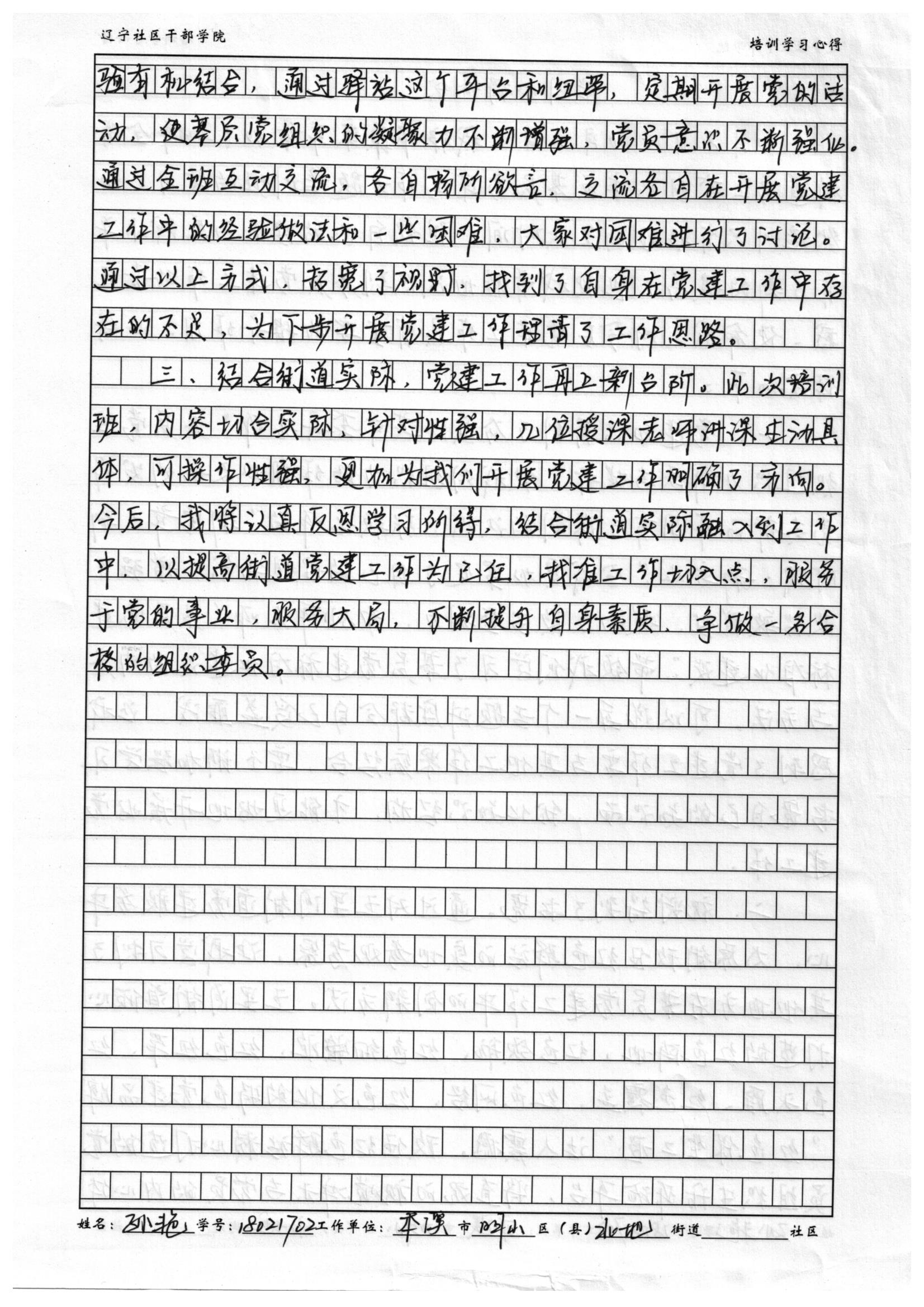 本溪市明山区北地街道党工委组织委员孙艳学习心得