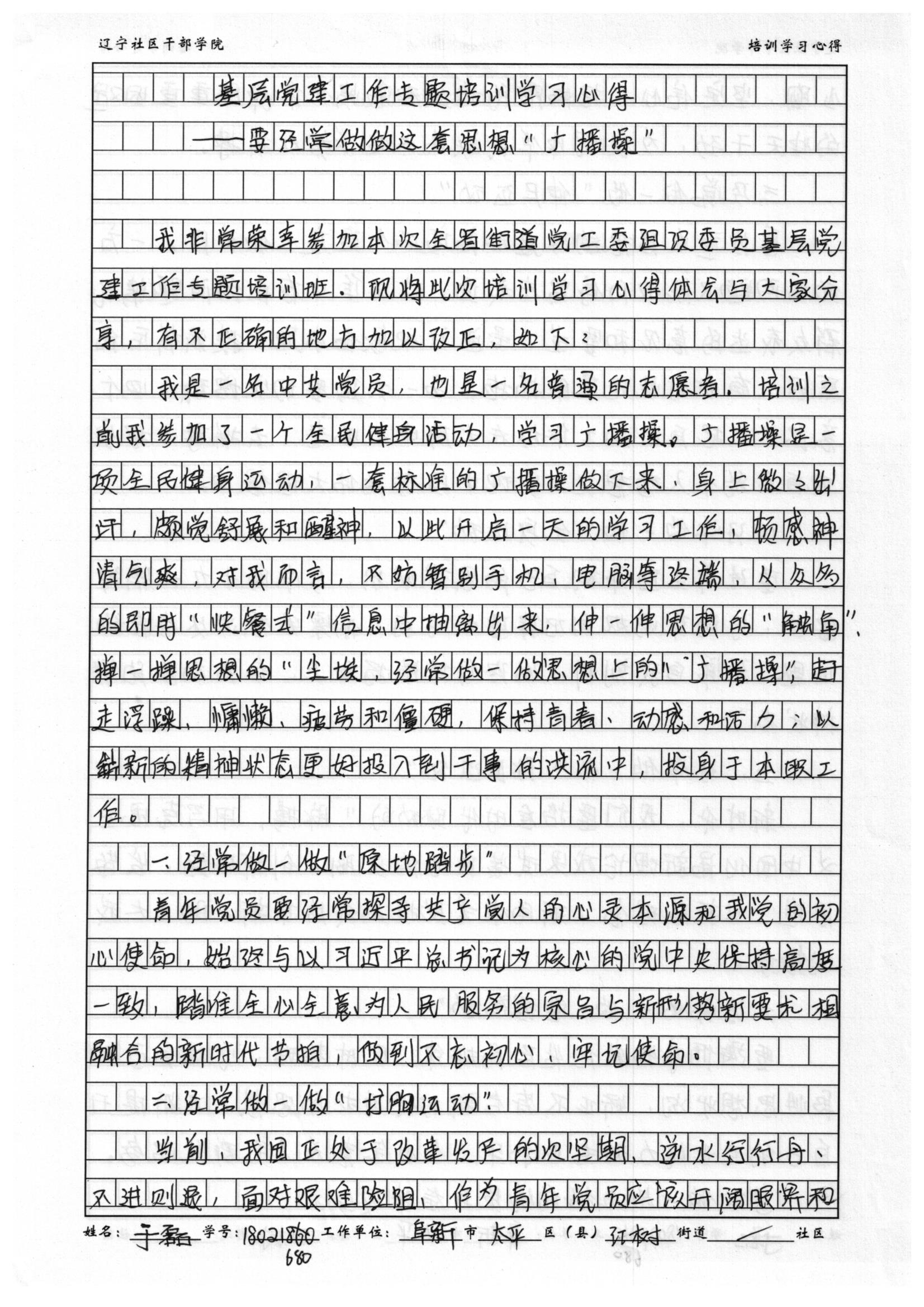 阜新市太平区红树街道党工委组织干事于磊学习心得