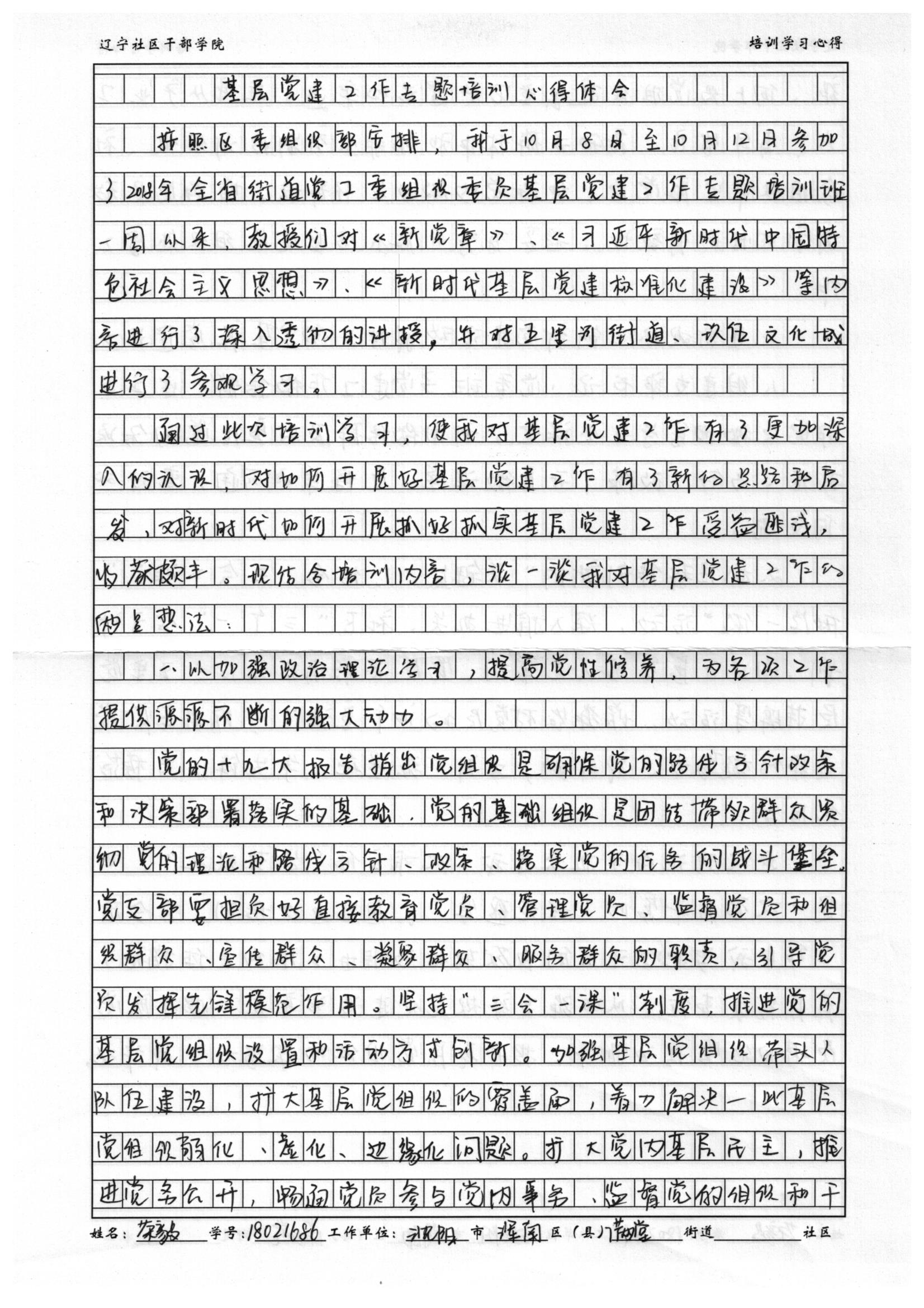 沈阳市浑南区满堂街道党工委组织委员荣毅学习心得