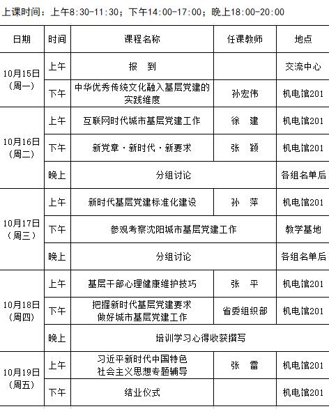 2018年全省街道党工委组织委员第三期(总第7期)培训班课程安排