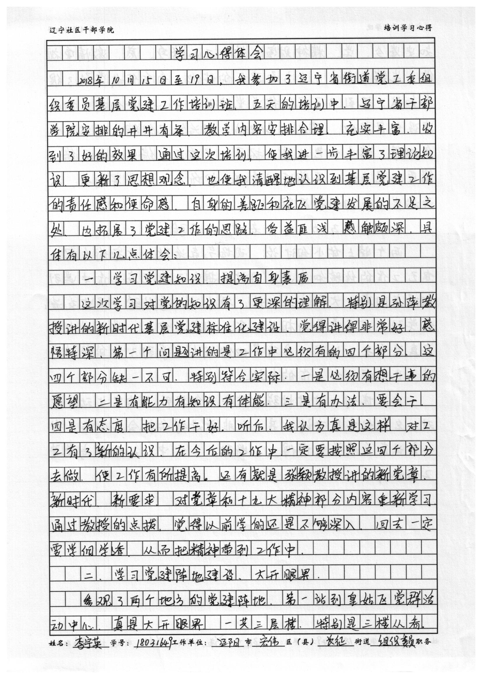 辽阳市宏伟区长征街道组织委员李宇英学习心得