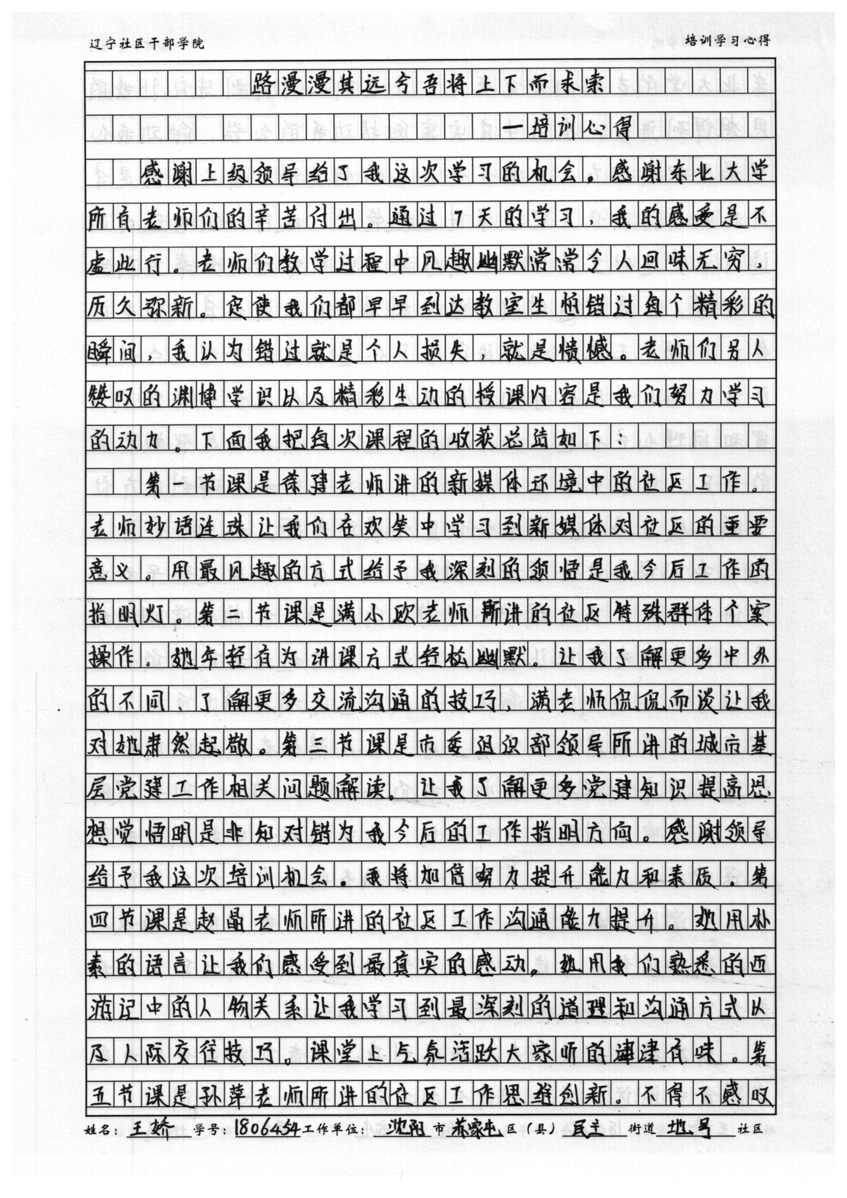 沈阳市苏家屯区民主街道地号社区王娇学习心得