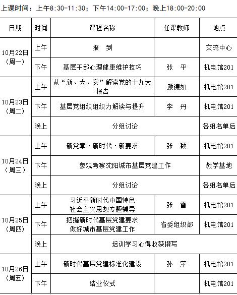 2018年全省街道党工委组织委员第四期(总第8期)培训班课程安排