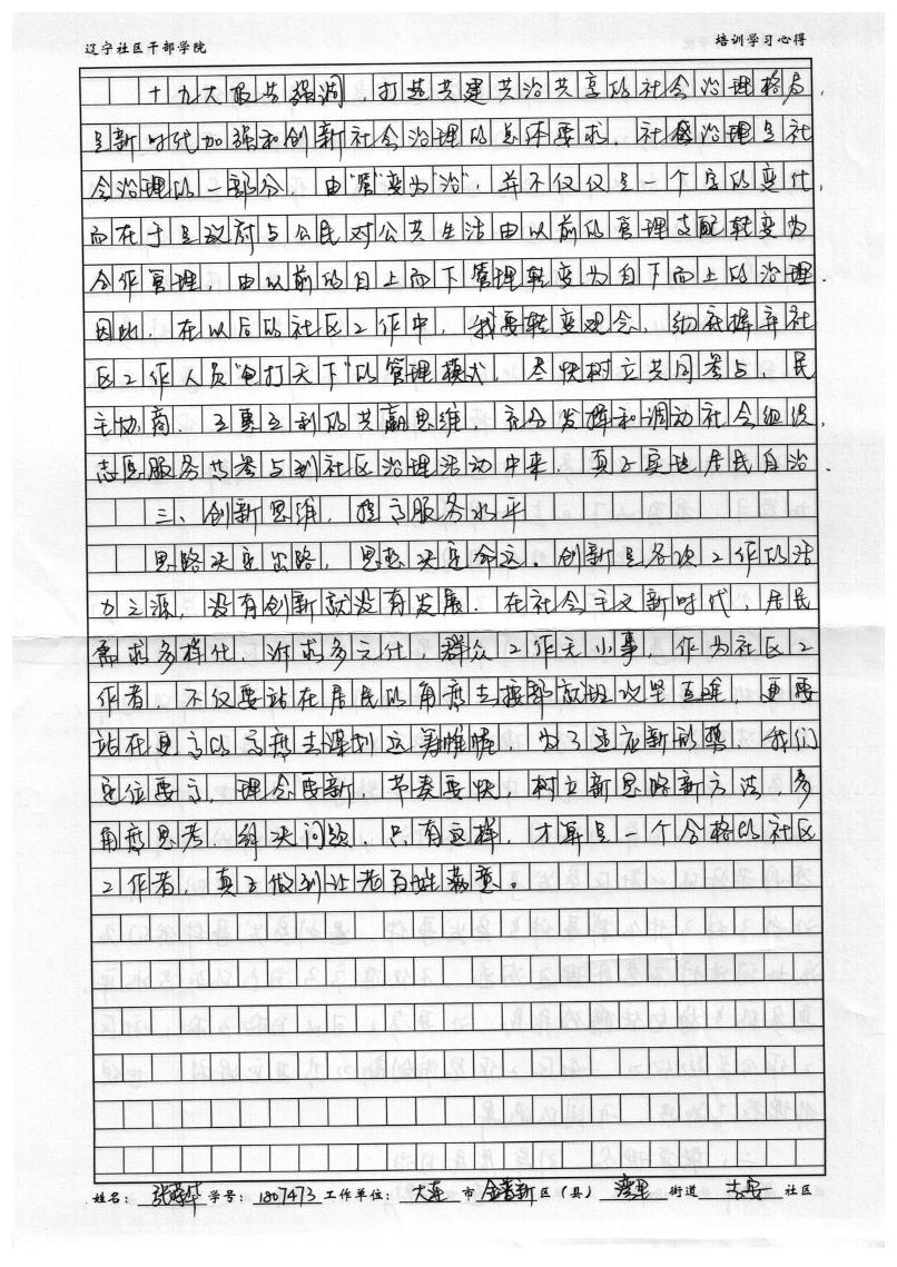 大连市金普新区湾里街道去安社区张荣华学习心得