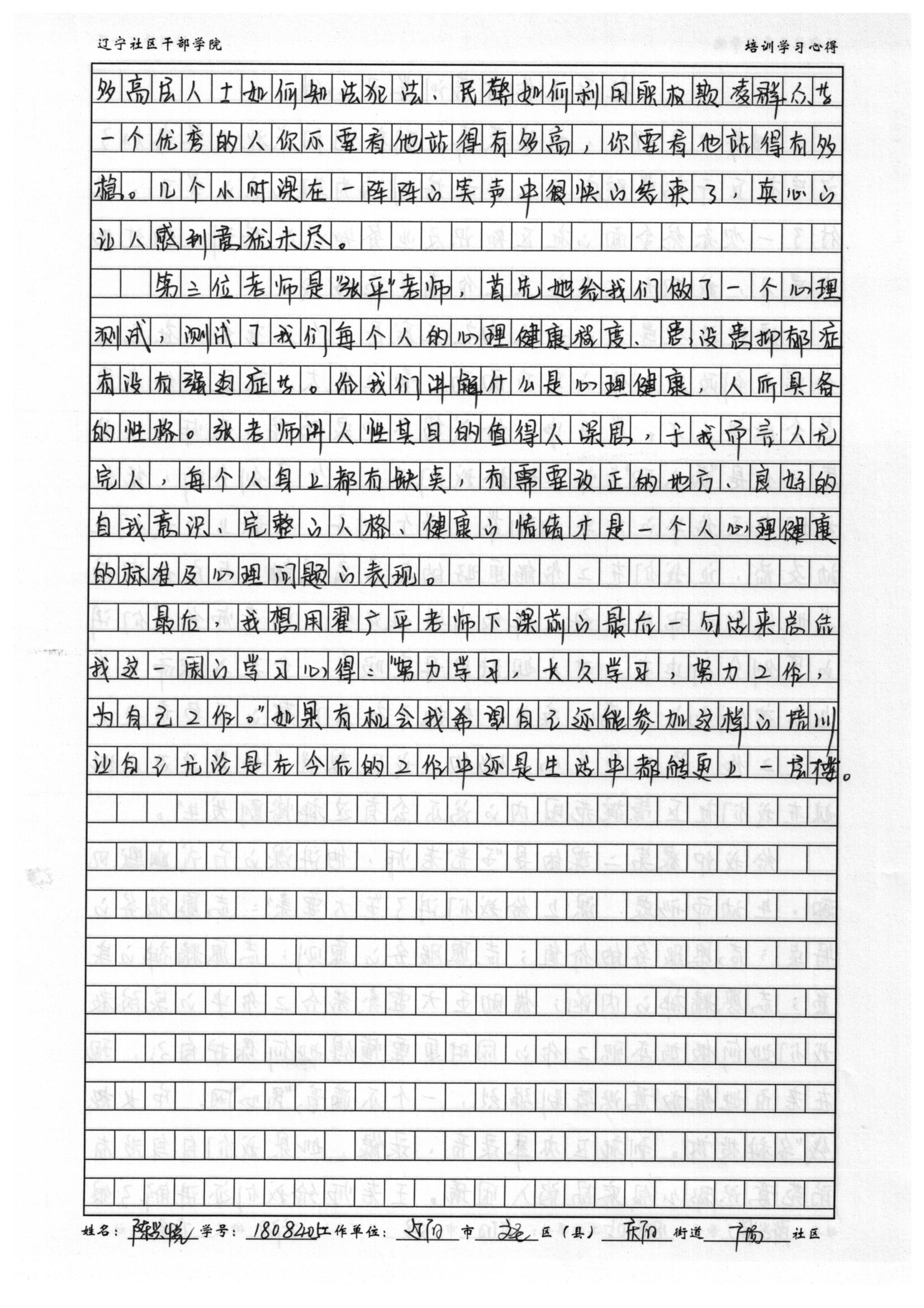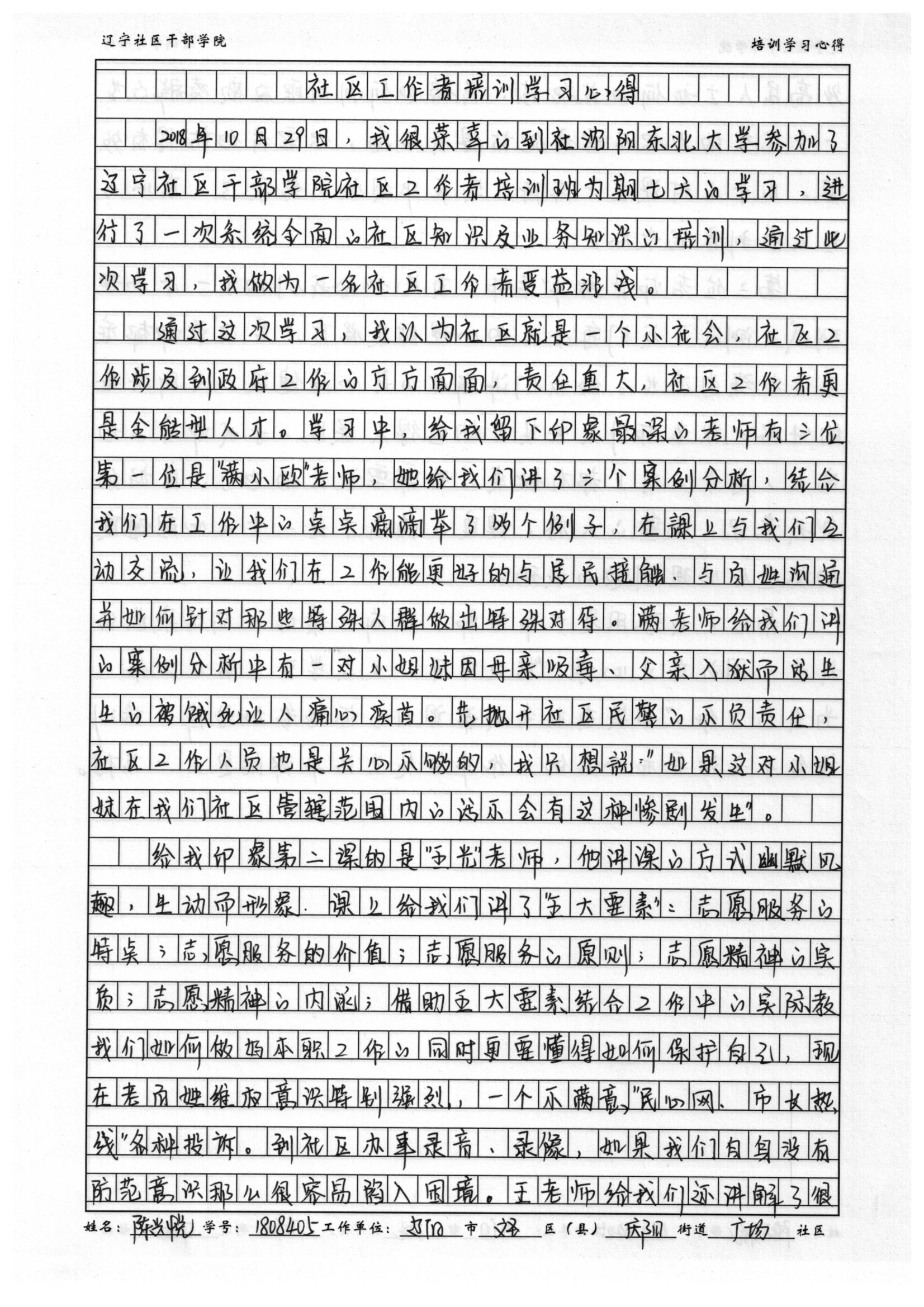 辽阳市文圣区庆阳街道广场社区陈兴悦培训心得