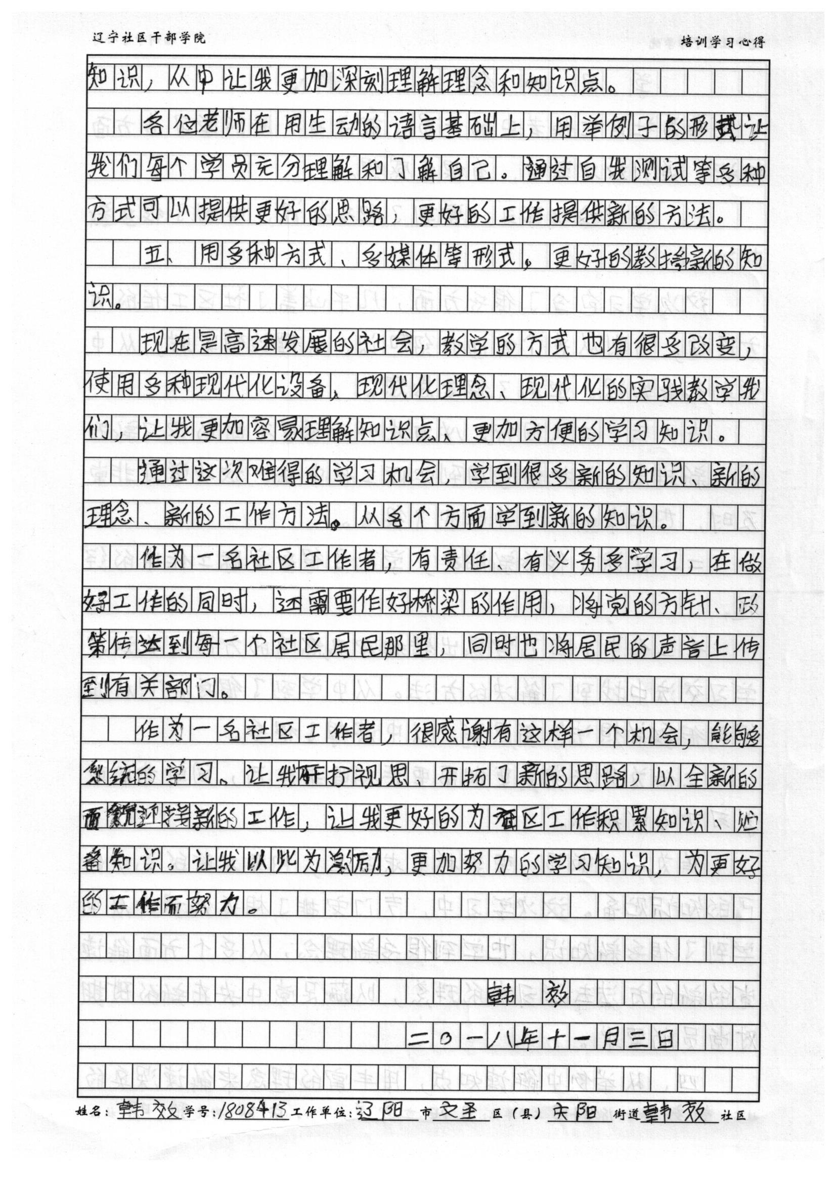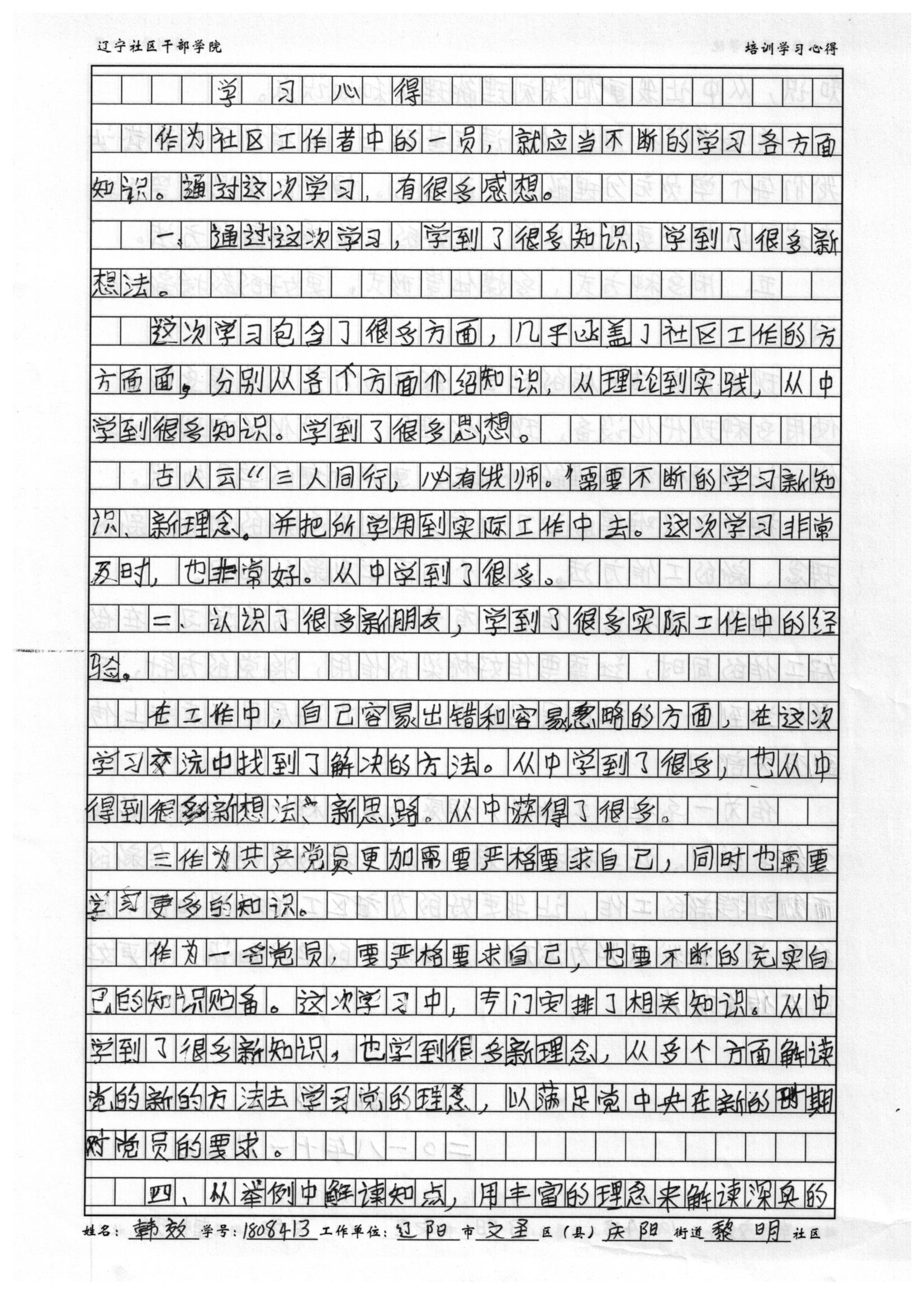 辽阳市文圣区庆阳街道黎明社区韩效培训心得