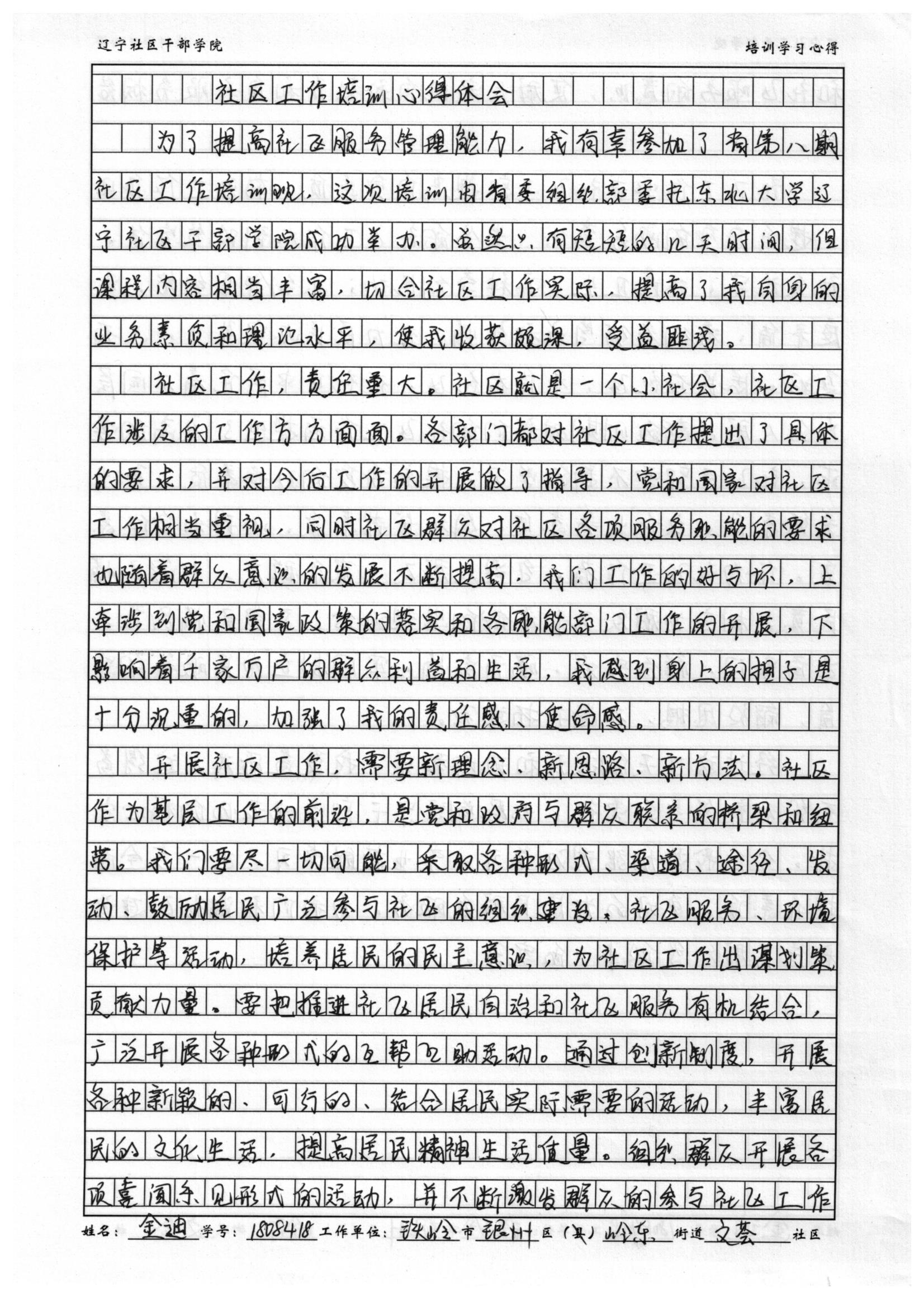 铁岭市银州区岭乐街道文芸社区金迪培训心得