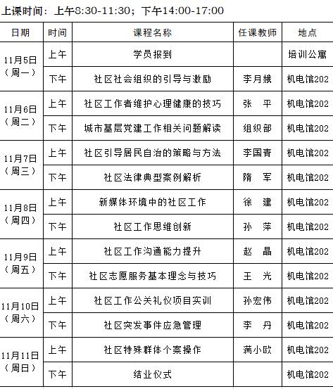 2018年社区工作者社区工作实务第九期(总第53期)培训班课程安排