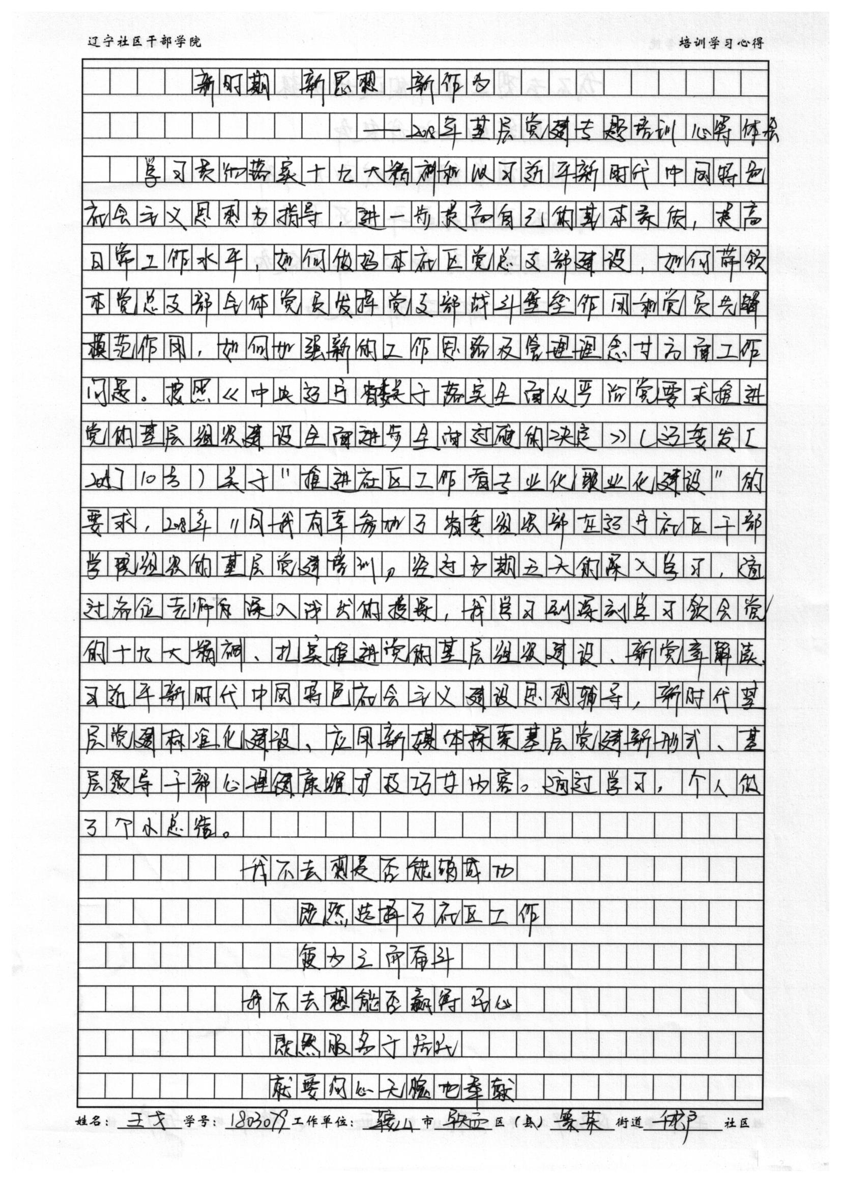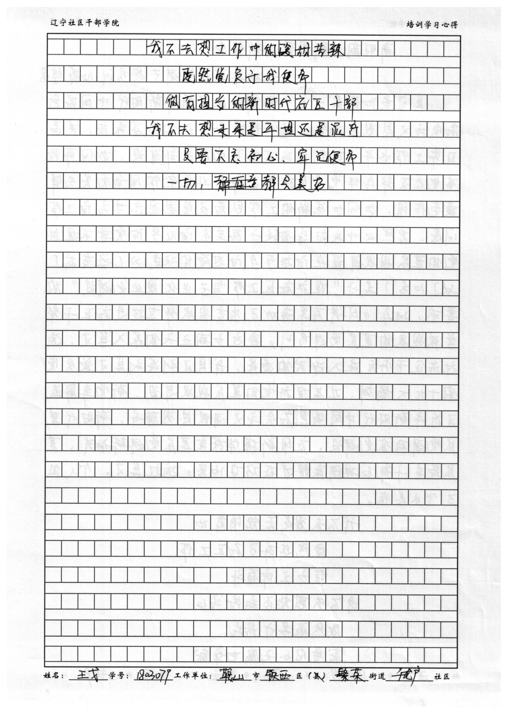 鞍山市铁西区繁荣街道千龙户社区书记王戈培训心得体会