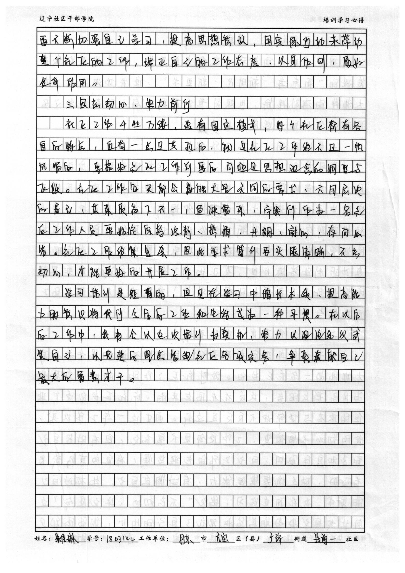 丹东市元宝区广济街道县前一社区书记朱佳琳培训心得体会