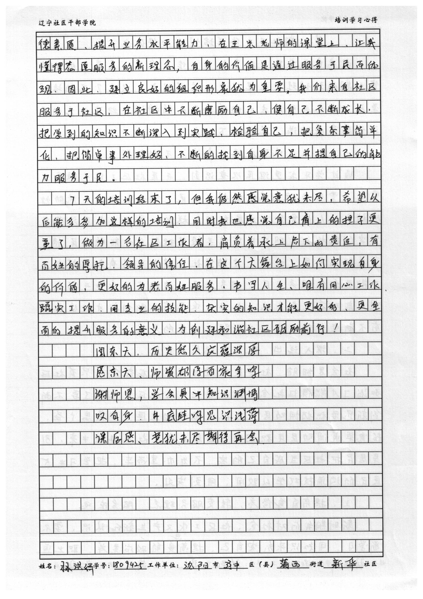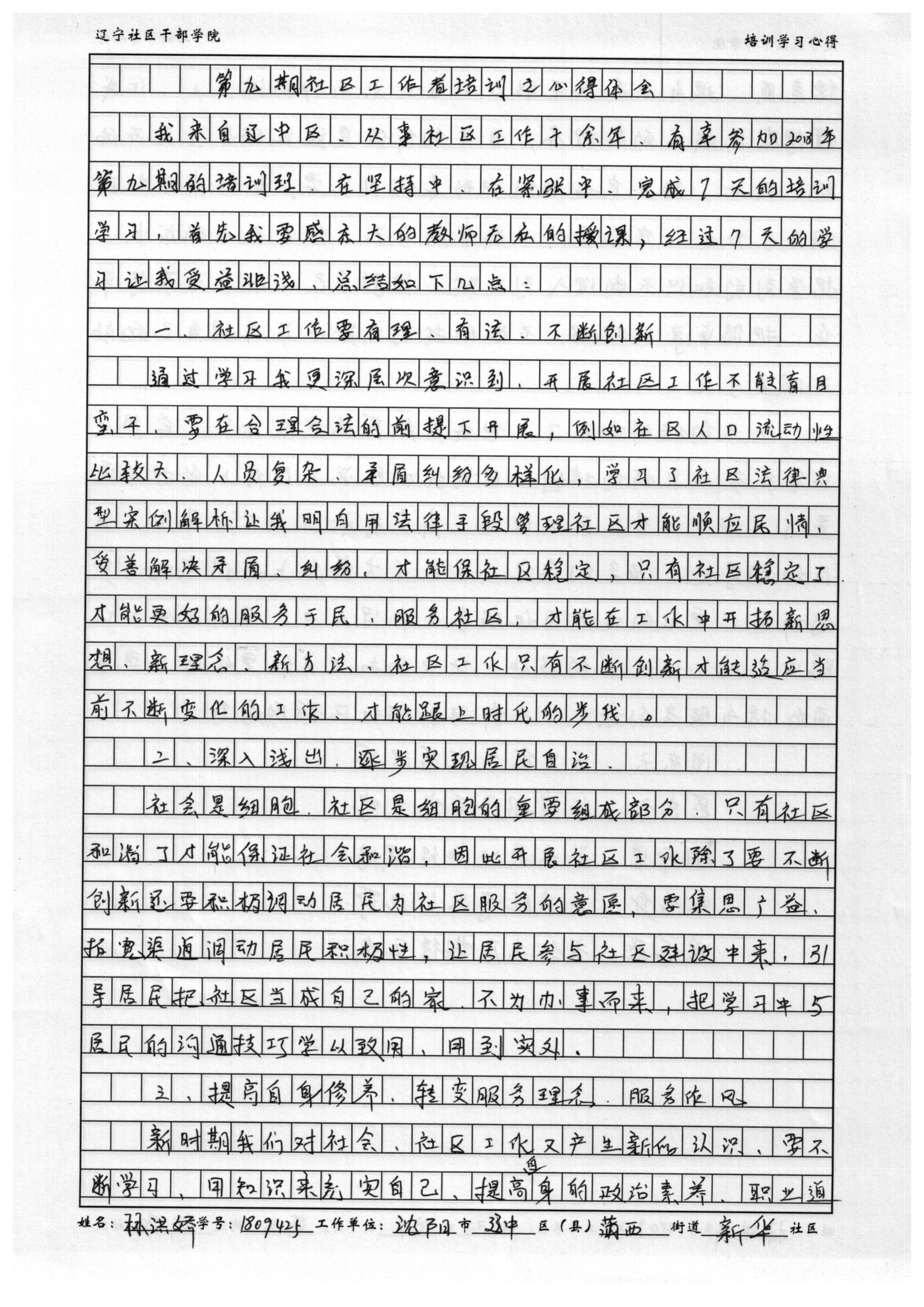 沈阳市辽中区蒲西街道新华社区委员林洪娇培训心得