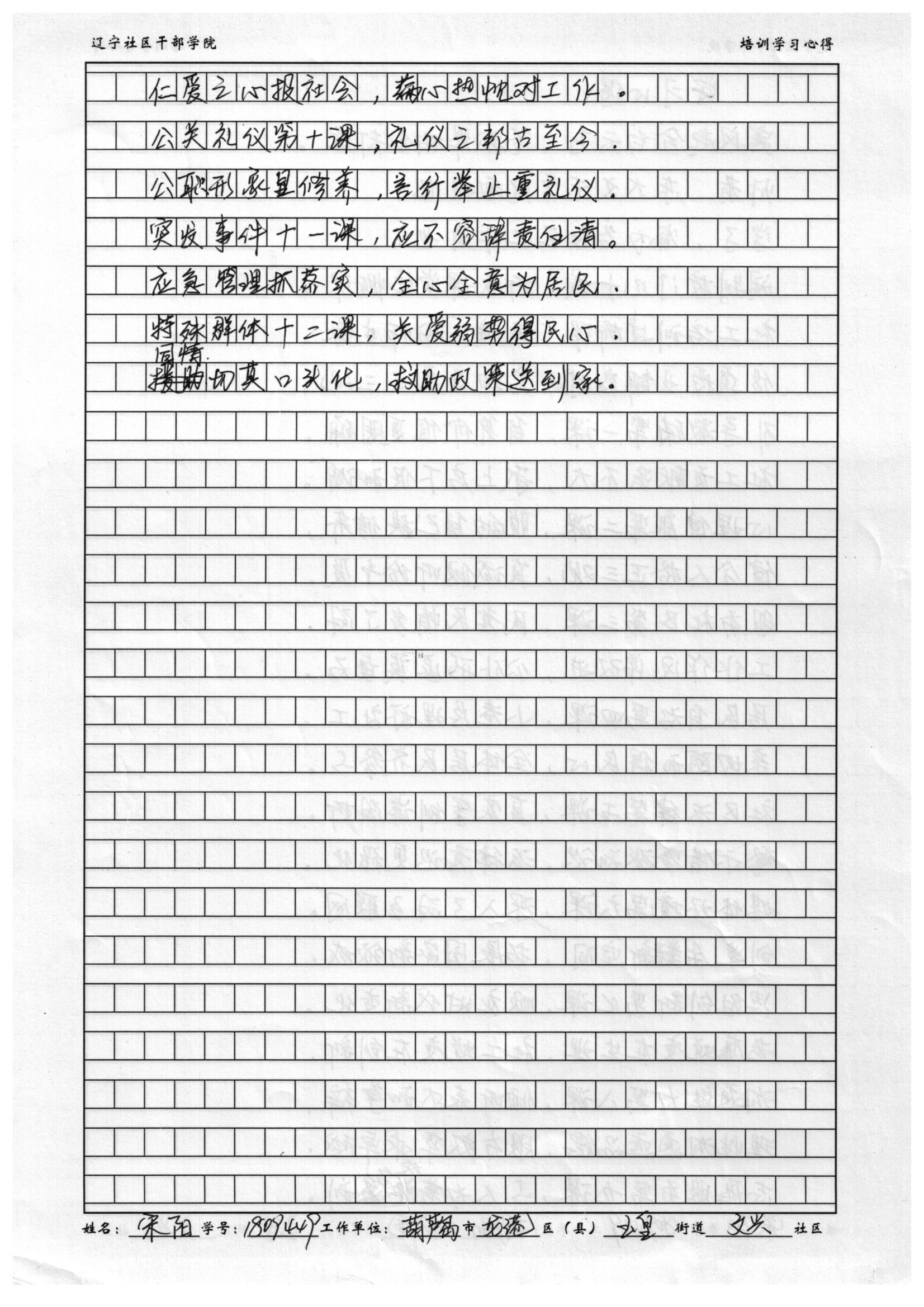 葫芦岛市龙港区玉皇街道文兴社区宋阳培训心得