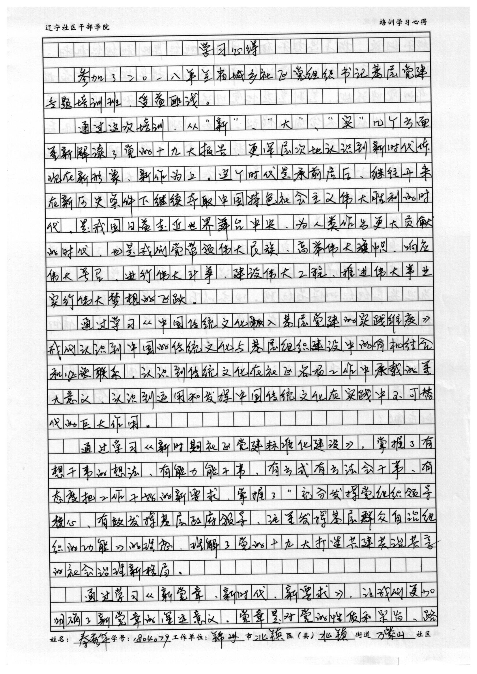 锦州市北镇市北镇街道万紫山社区书记秦秀华培训心得