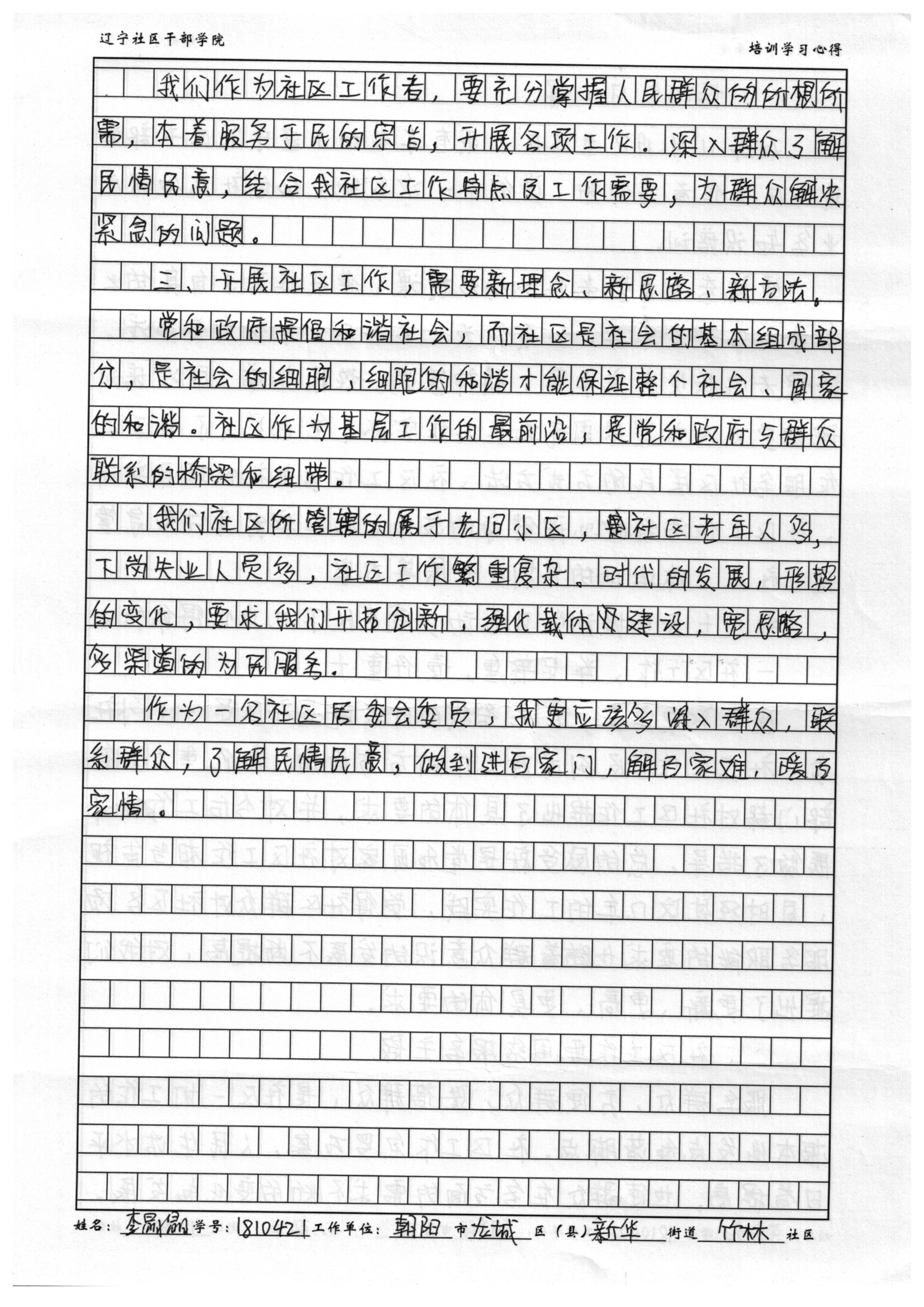 朝阳市龙城区新华街道竹林社区委员李晶晶培训学习心得