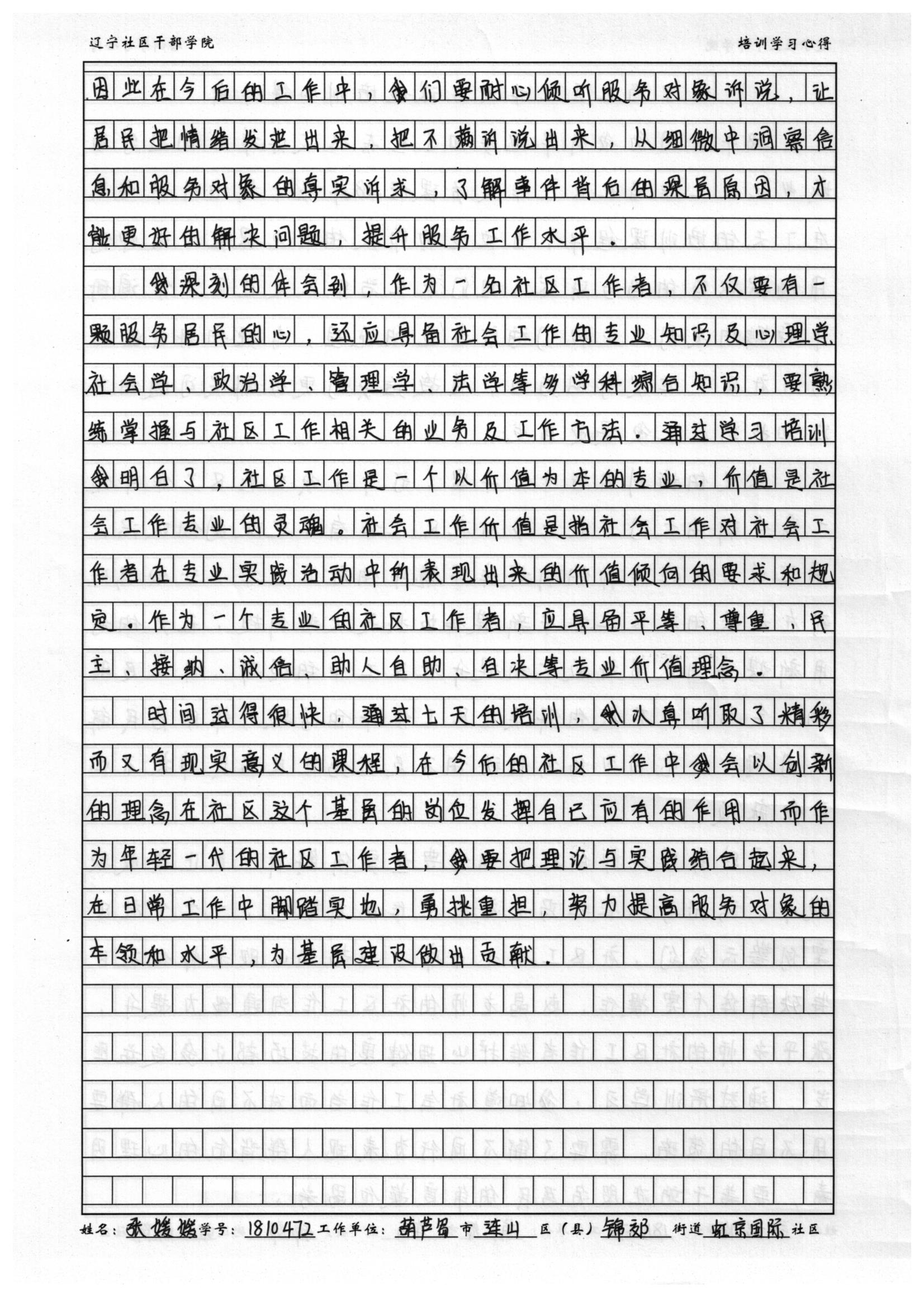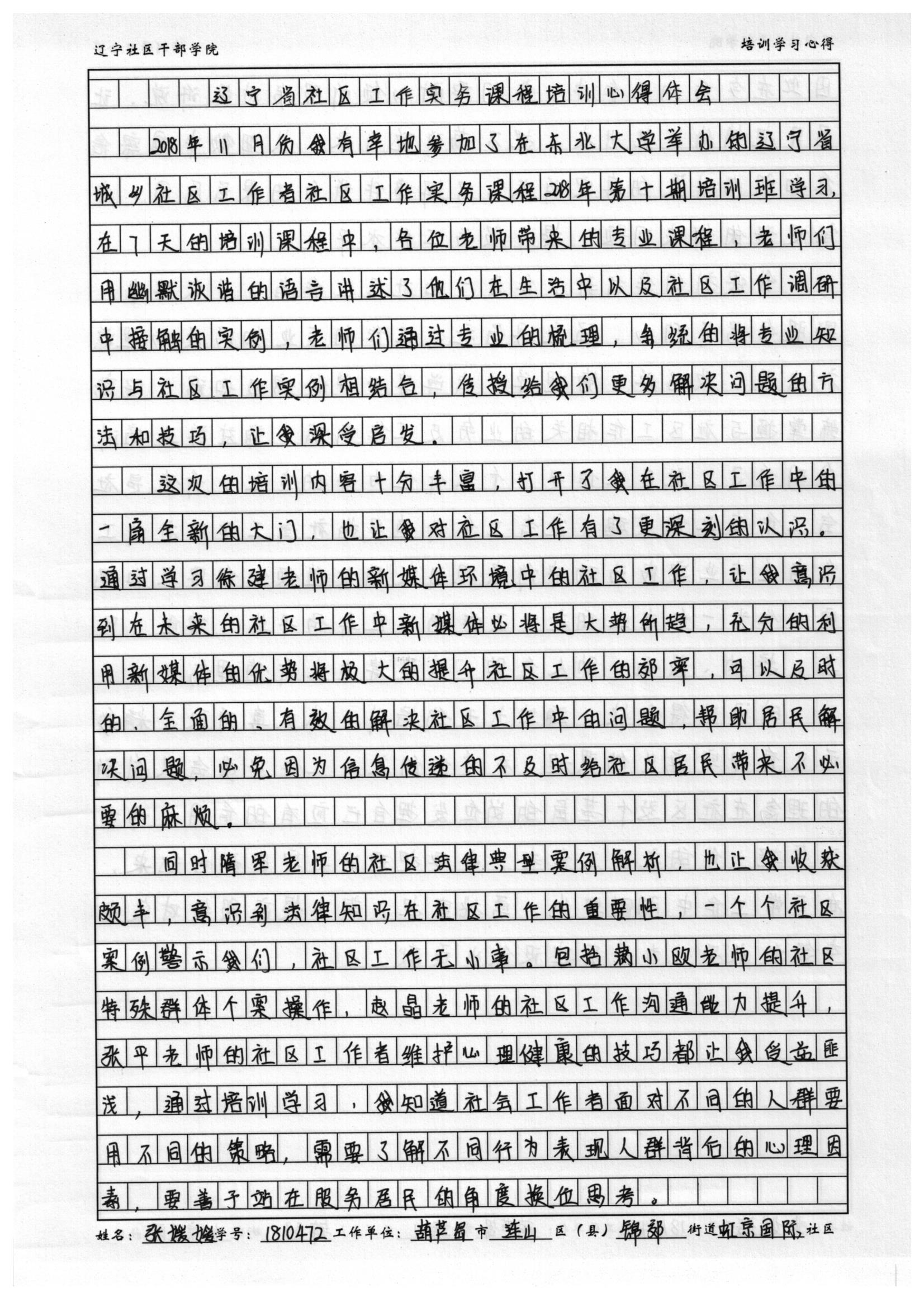 葫芦岛市连山区锦郊街道虹京国际社区委员张媛媛培训学习心得