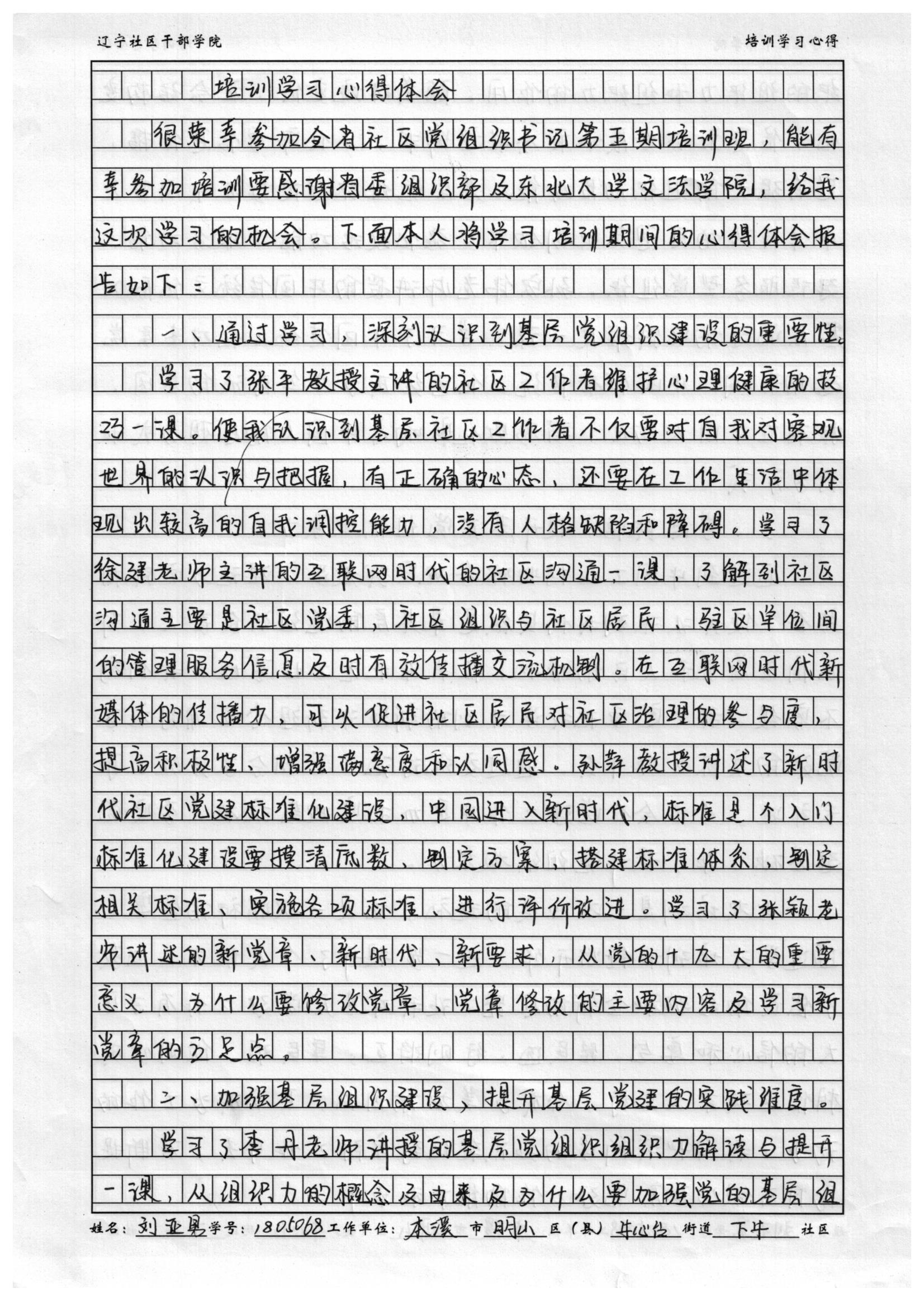 本溪市明山区牛心台街道下牛社区党委副书记刘亚男培训心得