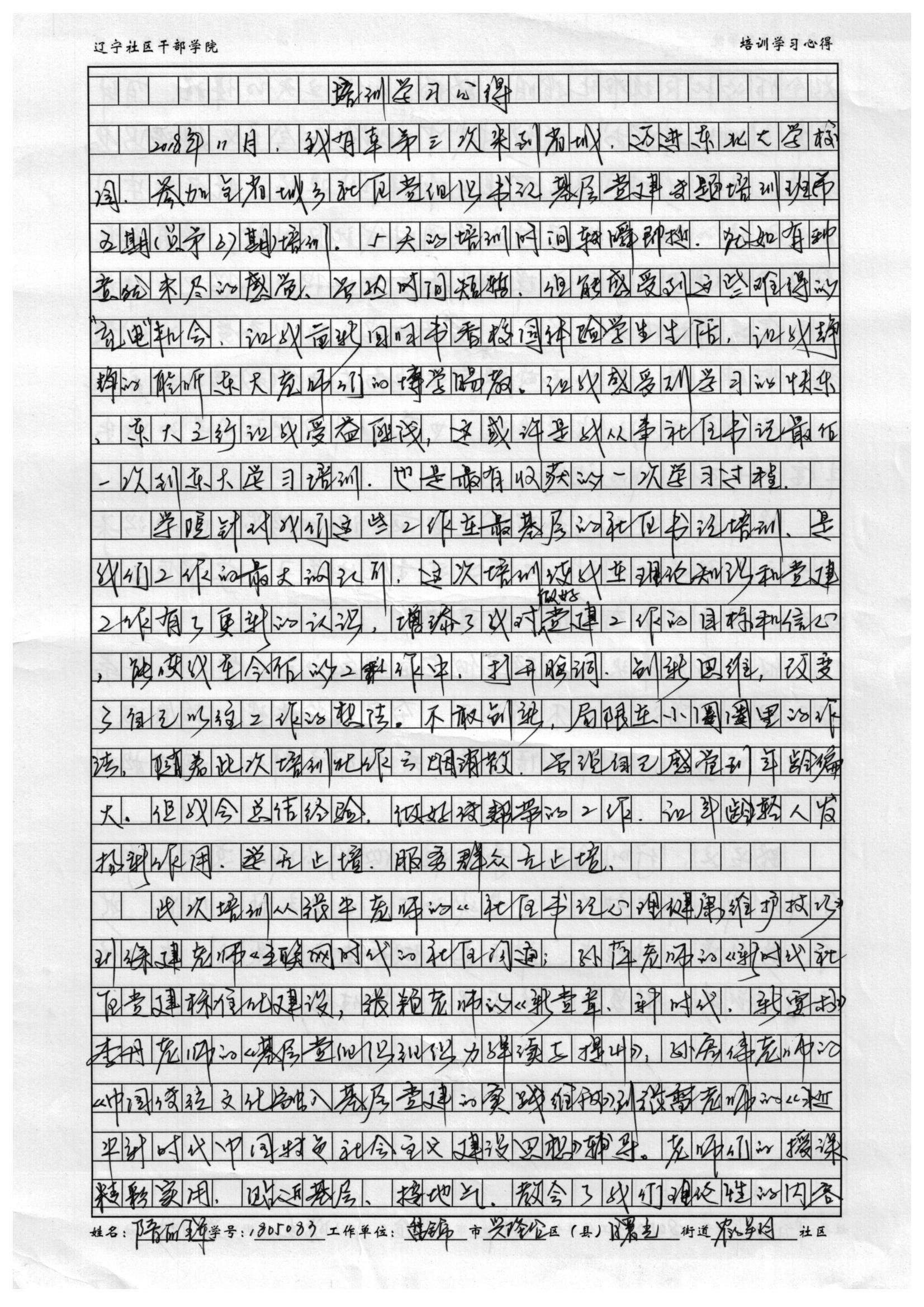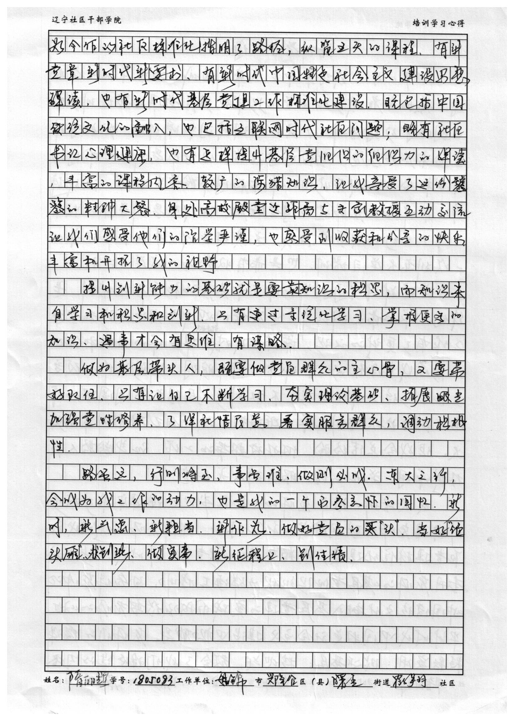 盘锦市兴隆台区曙光街道鹤翔社区书记隋丽辉培训心得