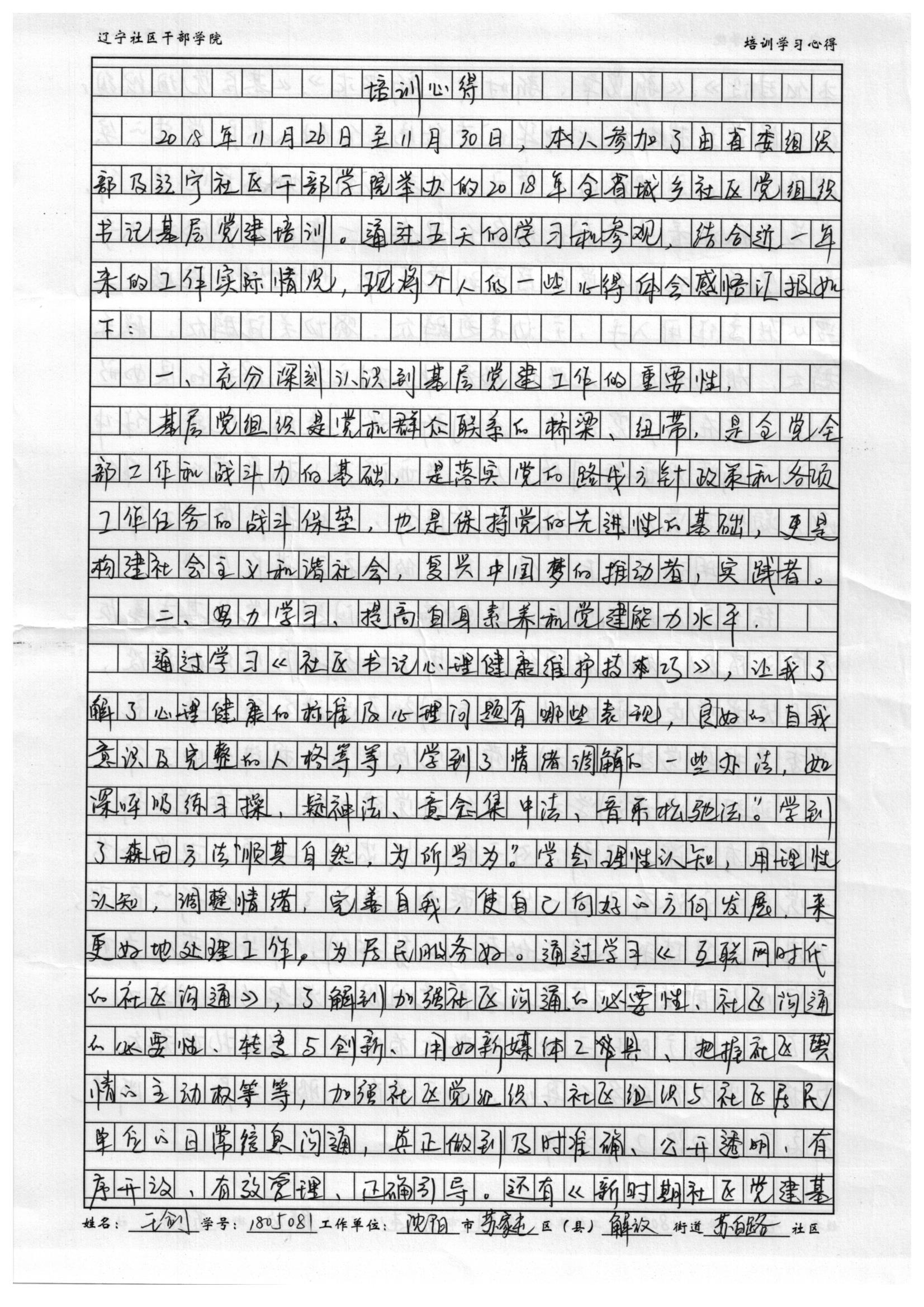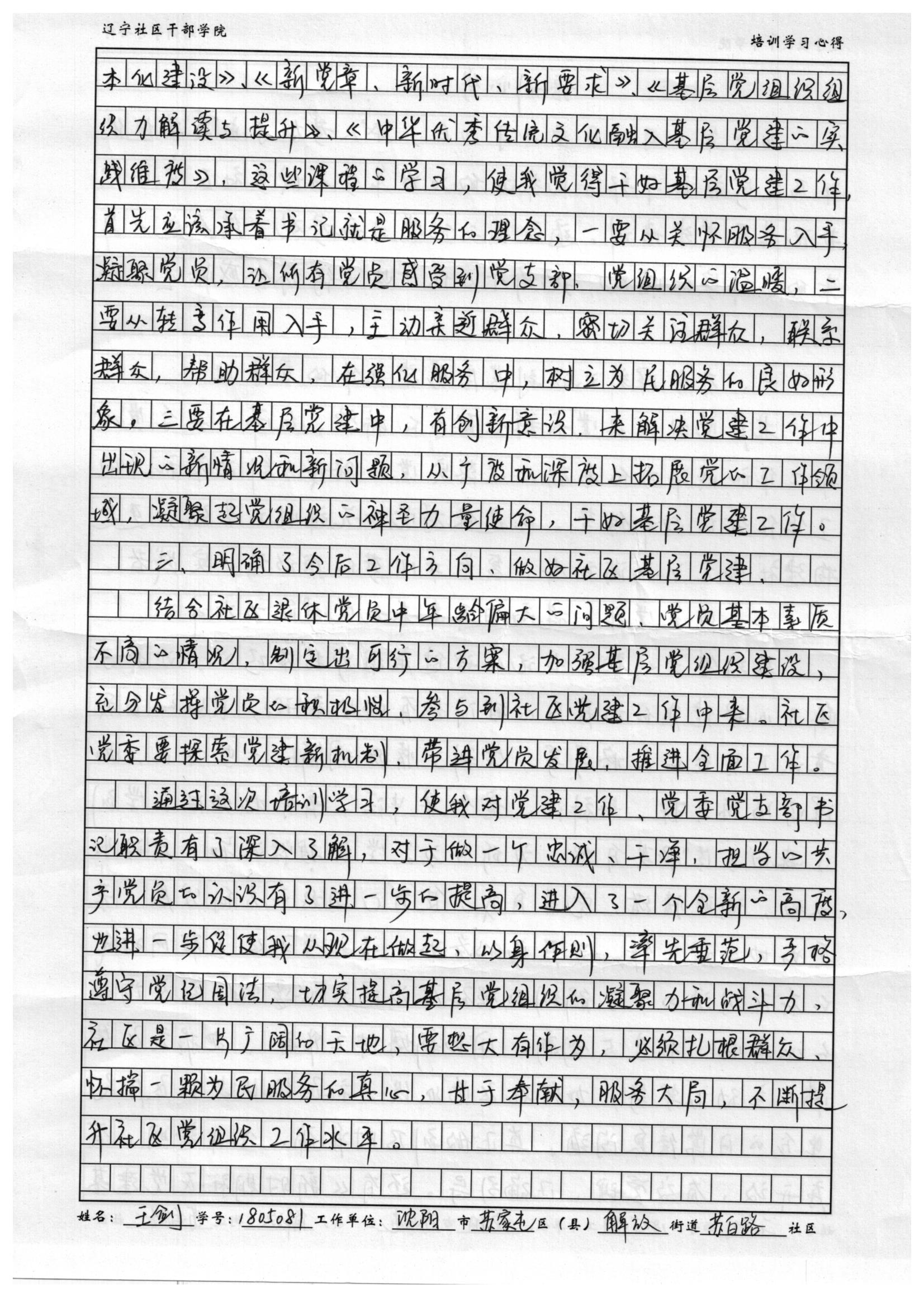 沈阳市苏家屯区解放街道苏白路社区书记王剑培训心得